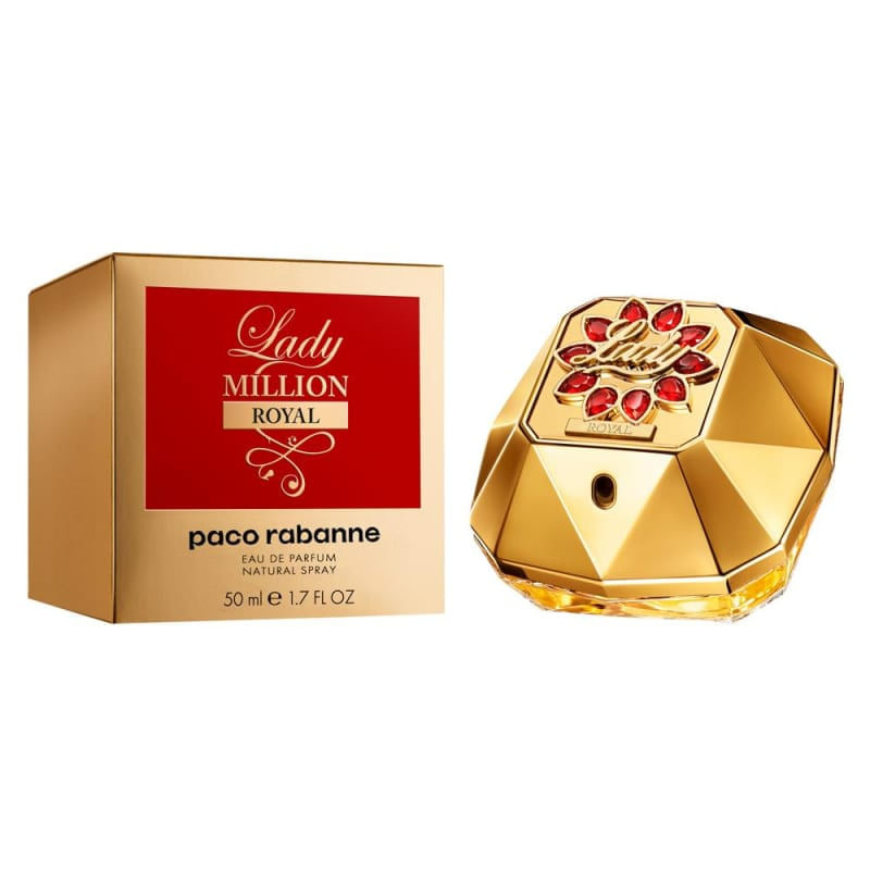 INFORMAÇÕES DO PRODUTO PACO RABANNE LADY MILLION ROYAL EDP 50ML Lady Million Royal de Paco Rabanne é um perfume Floral Frutado Feminino. Esta é uma nova fragrância. Alimentado por sua confiança interior, entre no reino 1 Million Royal com a fragrância definitiva de auto-expressão desafiadora, feita para você. Sem restrições por convenções, encontre a liberdade de viver de acordo com suas próprias regras com 1 Million Royal: uma mistura amadeirada fresca e extravagante que colide com uma sensualidade distinta para liberar o que o torna único. Pirâmide Olfativa Família Olfativa: Floral, Frutal. Notas de Saída: Roma. Notas de Coração: Flores Brancas. Notas de Fundo: Notas amadeiradas Ocasião Refinado e sofisticado, é ideal para ser usado durante o dia e a noite em diferentes situações: em encontros, jantares e até mesmo no trabalho.