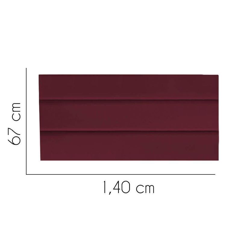 Painel Cabeceira Estofada Argentina 140cm Cama Box Casal Suede Bordo- Mabe Magazine Painel Cabeceira Estofada Cama Casal Argentina 140cm - MABE MAGAZINEA Cabeceira Painel Estofada é uma peça que combina funcionalidade e estilo, tornando-se um elememto essencial para seu quarto. Com uma estrutura robusta de madeira de pinus e eucalipto, ela garante durabilidade e resistência.O revestimento de espuma proporciona um toque macio e confortável,ideal para momentos de relaxamento.Além de seu conforto,a cabeceira tras um ar de sofisticação ao ambiente,elevando a decoração do seu espaço. Sua Variedade permite que se adapte a diferentes estilos,agregando charme e personalidade ao seu ambiente. Sem dúvidas, é uma escolha que une beleza,praticidade e conforto.Caracteristicas:- Largura: 140 cm;- Altura: 67 cm;- Profundidade: 8 cm;- Madeira Maciça de Eucalipto e Pinus;- Estofada;Observações:- Limpar com flanela limpa e seca. Não molhar o movél e não expor em lugar úmido ou proximo de fontes de calor. Não usar produtos abrasivos;- As imagens ambientadas são meramente ilustrativas e podem apresentar itens que não compoê o produto;- Objetos decorativos que aparecem na foto não acompanham o produto;- As cores do produto podem variar de acordo com o monitor, a iluminação do ambiente, ou sua percepção visual;- Confira as dimensões antes da compra e certifique-se de que o produto passará por elevadores, portas e corredores, já¡ que nossa entrega não inclui a subida de lances de escada, ou o issamento de produtos;- Produto para uso residencial em ambiente interno, não devendo ficar exposto diretamente ao sol, calor e umidades excessivas.