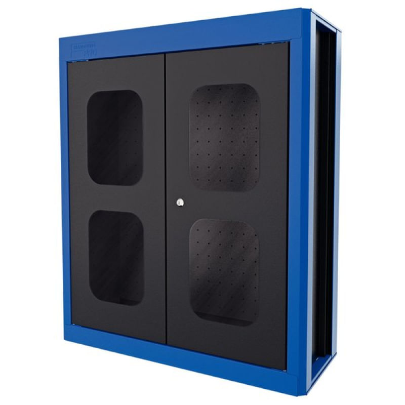 Painel para Ferramentas Superior Grande com 2 Portas e Chapas Perfuradas Tramontina PRO Azul Tramontina - Os organizadores modulares da Tramontina PRO permitem mobiliar oficinas mecânicas e concessionárias de forma personalizada. São diversas opções de móveis totalmente fabricados no Brasil e divididos em armários, painéis, bancadas, estantes e carros de ferramentas, que vão deixar o ambiente de trabalho mais bonito, organizado, seguro e ágil, pois cada ferramenta terá o seu lugar. Além disso, é possível personalizar a cor do organizador, escolher as ferramentas, gravar o nome da pessoa ou setor em cada ferramenta e ainda escolher a posição do organizador no ambiente de trabalho. Porque não basta ter a ferramenta certa, é preciso ter ela sempre à mão. Características Gerais do Produto: Garantia: • 3 Meses