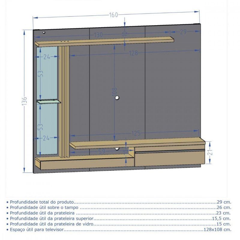 Painel Para Tv 55 Polegadas Denver Bechara Preto Fosco Com CinamomoUma sala moderna e bem aconchegante requer um móvel diferenciado como o Painel Denver desenvolvido para oferecer total conforto e comodidade para você e sua família. Características: Para TV até 55 polegadas Espelhos decorativos Prateleira de vidro com suportes metálicos Prateleira superior de 25 mm e 15 Acabamento Semi Brilho LED elétrico com botão liga/desliga Puxador em MDF revestido Dobradiças Metálicas Ripas Decorativas Suporta até 60 kg Dimensões: Atura: 136 cm Largura: 160 cm Profundidade: 29 cm Garantia do fornecedor: 3 meses AVISO: Esclarecemos que a OPÇÃO MÓVEIS se responsabilizará pela entrega dos produtos adquiridos até a porta de entrada ou portaria do endereço indicado, ou seja: é de total responsabilidade do cliente a montagem, desmontagem e instalação do produto adquirido. Para evitar futuros desagrados ou imprevistos com a entrega, também é necessário que o cliente confira as dimensões do produto escolhido, antes de finalizar a compra, devendo certificar-se de que a mercadoria passará normalmente por elevador, porta, escada e corredor.