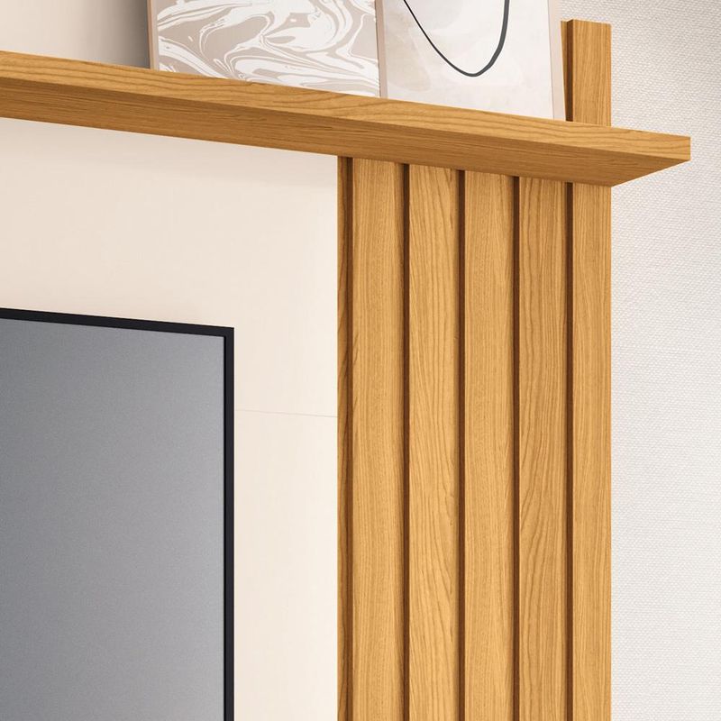 O Painel Para TV Lake não é apenas um suporte para a sua TV; é uma peça central que eleva toda a decoração da sua sala de estar. Ele transforma momentos de lazer em experiências memoráveis, seja assistindo a um filme, jogando ou recebendo amigos. Com esse painel suspenso, cada detalhe do seu espaço se torna uma expressão do seu estilo pessoal. Além disso, com a bancada suspensa, você maximiza o espaço da sua sala, criando uma sensação de fluidez, ao passo que as portas são ideais para armazenar controles remotos e outros itens, mantendo tudo organizado e ao seu alcance. Para completar, a prateleira superior oferece um espaço perfeito para exibir objetos decorativos, plantas ou quadros, permitindo que você personalize seu ambiente de acordo com seu gosto. Em outras palavras, invista em um produto que não apenas atende suas necessidades práticas, mas também transforma sua sala de estar em um ambiente convidativo e cheio de personalidade. Aproveite! Dimensões total do produto (L x A x P) 160 x 135 x 30,5 cm Medidas Internas Espaço livre para TV (L x A): 160 x 93 cm Nicho central (L x A): 52 x 17,5 cm Profundidade tampo da bancada: 28 cm Características: Estrutura em MDP e MDF de 25mm, 15mm e 12mm. Peças na cor Off White em impressão UV Alto Brilho e peças na cor Cinamomo com acabamento em impressão UV Texturizada. Ideal para TV de até 55 polegadas. Painel ripado moderno e sofisticado. 02 portas basculantes com dobradiças metálicas. Puxador em poliestireno com acabamento na cor champanhe. Prateleira superior e tampo com espessura de 25mm. Possui passa fios para melhor organização. Suporta até 30 kg distribuídos. - Produto entregue desmontado, acompanha manual de montagem. Sistema de montagem: Cavilhas, parafusos e girofix. - Este produto deve ser limpo com pano macio e seco. Não utilize produtos abrasivos como álcool e detergente, assim como esponjas rígidas ou palha de aço. - Proteja a superfície do móvel de objetos que transmitam calor ou umidade. Observações importantes: - Produto para uso residencial em ambiente interno, não devendo ficar exposto diretamente ao sol, calor e umidade excessivos. - Pode haver alguma diferença de tonalidade entre a imagem e o produto real, por conta do tratamento de imagens e a calibração de cores do seu monitor. - As imagens são meramente ilustrativas, não acompanham objetos de decoração e eletrônicos. - Ao receber a mercadoria, o cliente deve verificar as condições da embalagem, caso haja alguma avaria não assine o comprovante de recebimento. - Montagem, desmontagem e outras instalações serão de responsabilidade do cliente. Não nos responsabilizamos, no ato da entrega, por subir escadas/elevadores ou pelo transporte por guincho em apartamentos. Eventuais despesas são de responsabilidade do comprador. - Confira as dimensões do produto e certifique-se de que passará normalmente por supostos elevadores, portas, escadas e/ou corredores de sua residência.