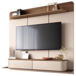 Sofisticação e minimalismo são as palavras que expressam a essência do Painel para TV Cheri, da Lyam Decor. Esse painel suspenso vai redefinir o conceito de elegância em sua sala de estar; afinal, foi projetado para TVs de até 70 polegadas, sem contar que a combinação das linhas retas e cantos arredondados refletem as tendências atuais do design orgânico. Além disso, as duas portas basculantes se abrem apenas com um toque, o que oferece um visual minimalista e clean, ideal para quem busca um ambiente moderno e sofisticado. Eleva o estilo do seu espaço, proporcionando funcionalidade sem comprometer a estética. Transforme sua sala com o Painel para TV Cheri e experimente a harmonia perfeita entre design e praticidade! Dimensões total do produto (L x A x P) 180 x 165 x 31,5 cm Características: Estrutura em MDP e MDF de 25 mm e 15 mm. Peças na cor Off White em impressão UV Alto Brilho e peças na cor Castanho com acabamento em impressão UV Texturizada. Ideal para TVs de até 70 polegadas. 02 Portas basculantes com dobradiças metálicas e abertura com fecho toque. 01 Prateleira superior com espessura de 25 mm. Design orgânico com painel, bancada e prateleira com cantos curvos. Suporta até 40 kg distribuídos. - Produto entregue desmontado, acompanha manual de montagem. Sistema de montagem: Girofix, Cavilhas e Parafusos. - Este produto deve ser limpo com pano macio e seco. Não utilize produtos abrasivos como álcool e detergente, assim como esponjas rígidas ou palha de aço. - Proteja a superfície do móvel de objetos que transmitam calor ou umidade. Observações importantes: - Produto para uso residencial em ambiente interno, não devendo ficar exposto diretamente ao sol, calor e umidade excessivos. - Pode haver alguma diferença de tonalidade entre a imagem e o produto real, por conta do tratamento de imagens e a calibração de cores do seu monitor. - As imagens são meramente ilustrativas, não acompanham objetos de decoração e eletrônicos. - Ao receber a mercadoria, o cliente deve verificar as condições da embalagem, caso haja alguma avaria não assine o comprovante de recebimento. - Montagem, desmontagem e outras instalações serão de responsabilidade do cliente. Não nos responsabilizamos, no ato da entrega, por subir escadas/elevadores ou pelo transporte por guincho em apartamentos. Eventuais despesas são de responsabilidade do comprador. - Confira as dimensões do produto e certifique-se de que passará normalmente por supostos elevadores, portas, escadas e/ou corredores de sua residência.