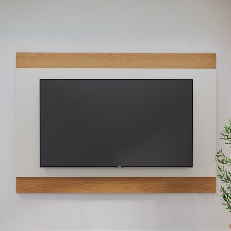 O Painel para TV Cairo, da Lyam Decor, é a prova de que o menos é mais. Com design clean e tonalidades sóbrias, esse painel harmoniza facilmente com diversos estilos de decoração e ambientes. Você pode combinar esse painel com rack e ganhar uma sala de estar completa, ou ainda instalar no quarto e curtir aquele programa no conforto da cama e até mesmo aproveitá-lo no escritório para dispor a TV de até 75 polegadas e deixar as duas apresentações mais dinâmicas. Enfim, possibilidades não faltam com esse painel para TV. Então, seja qual for a sua ideia, o Cairo é para você. Adicione ao seu carrinho e surpreenda-se! Dimensões total do produto (L x A x P) 200 x 140 x 4,5 cm Características: Estrutura em MDP 15mm. Peças na cor Off White Matte e Freijó com acabamento em pintura UV fosco. Ideal para TV de até 75 polegadas. Painel para TV para diversos ambientes de pode ser combinado com rack. Acompanha passa fios, para melhor organização. Suporta até 35 kg distribuídos. - Produto entregue desmontado, acompanha manual de montagem. Sistema de montagem: Cavilhas, parafusos. - Este produto deve ser limpo com pano macio e seco. Não utilize produtos abrasivos como álcool e detergente, assim como esponjas rígidas ou palha de aço. - Proteja a superfície do móvel de objetos que transmitam calor ou umidade. Observações importantes: - Produto para uso residencial em ambiente interno, não devendo ficar exposto diretamente ao sol, calor e umidade excessivos. - Pode haver alguma diferença de tonalidade entre a imagem e o produto real, por conta do tratamento de imagens e a calibração de cores do seu monitor. - As imagens são meramente ilustrativas, não acompanham objetos de decoração e eletrônicos. - Ao receber a mercadoria, o cliente deve verificar as condições da embalagem, caso haja alguma avaria não assine o comprovante de recebimento. - Montagem, desmontagem e outras instalações serão de responsabilidade do cliente. Não nos responsabilizamos, no ato da entrega, por subir escadas/elevadores ou pelo transporte por guincho em apartamentos. Eventuais despesas são de responsabilidade do comprador. - Confira as dimensões do produto e certifique-se de que passará normalmente por supostos elevadores, portas, escadas e/ou corredores de sua residência.