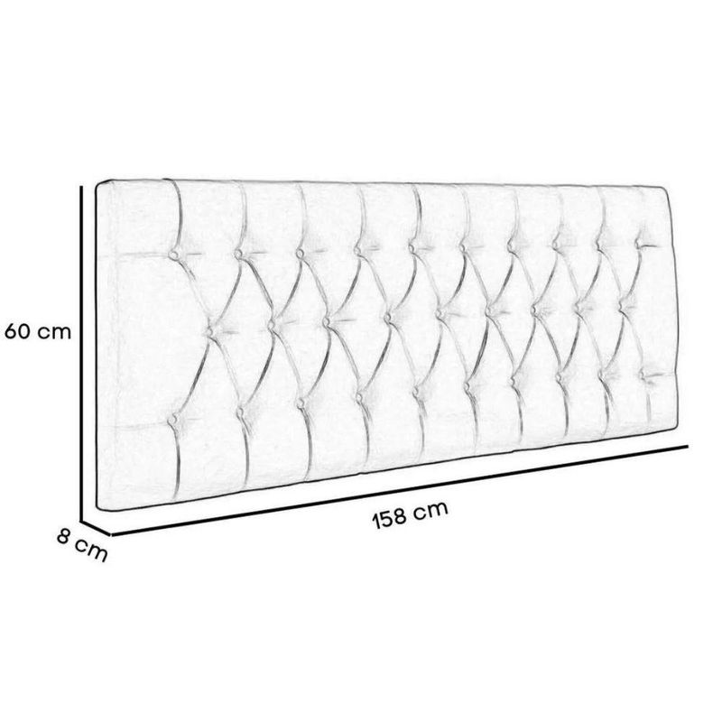 Painel Suspenso Cabeceira Dubai 1,58m Para Cama Queen Size Suede Bege - Aurora LineCabeceira Estofada - Aurora LineValorize o seu quarto com elegância com a Cabeceira Estofada! Se você está em busca de um item que traga conforto, sofisticação e um toque de modernidade para o seu ambiente, essa é a escolha perfeita.A Cabeceira Estofada é um produto de alta qualidade, feito com materiais selecionados e duráveis. Sua estrutura é produzida em madeira de pinus e eucalipto, garantindo resistência e estabilidade. Além disso, é revestida com espuma de alta densidade, proporcionando um conforto excepcional.Com um design moderno e sofisticado, a Cabeceira Estofada se adapta perfeitamente a qualquer estilo de decoração. Seja para um quarto ou para um canto alemão, ela traz beleza e elegância para o ambiente. Seu acabamento impecável e detalhes cuidadosamente pensados fazem dela um item único.Além de sua estética encantadora, a Cabeceira Estofada também é extremamente funcional. Ela oferece um suporte confortável para a cabeça e as costas, permitindo que você desfrute de momentos de relaxamento e descanso. Seja para ler um livro, assistir TV ou simplesmente relaxar, essa cabeceira é perfeita para tornar esses momentos ainda mais agradáveis.Características:- Largura: 158 cm;- Altura: 60 cm;- Profundidade: 8 cm;- Produto estofado;- Produzido em Madeira de Pinus e Eucalipto.Observações:- Não acompanha kit frame para fixar no box;- Limpar com flanela limpa e seca. Não molhar o móvel e não expor em lugar úmido ou próximo de fontes de calor. Não usar produtos abrasivos;- As imagens ambientadas são meramente ilustrativas e podem apresentar itens que não compõe o produto;- Objetos decorativos que aparecem na foto não acompanham o produto;- As cores do produto podem variar de acordo com o monitor, a iluminação do ambiente, ou sua percepção visual;- Confira as dimensões antes da compra e certifique-se de que o produto passará por elevadores, portas e corredores, já que nossa entrega não inclui a subida de lances de escada, ou o lançamento de produtos;- Ao receber seus produtos, verifique no ato do recebimento qualquer dano na embalagem. Caso tenha alguma avaria, favor não assinar o comprovante de recebimento (A transportadora tem obrigação de esperar a conferência);- Produto para uso residencial em ambiente interno, não devendo ficar exposto diretamente ao sol, calor e umidades excessivas.
