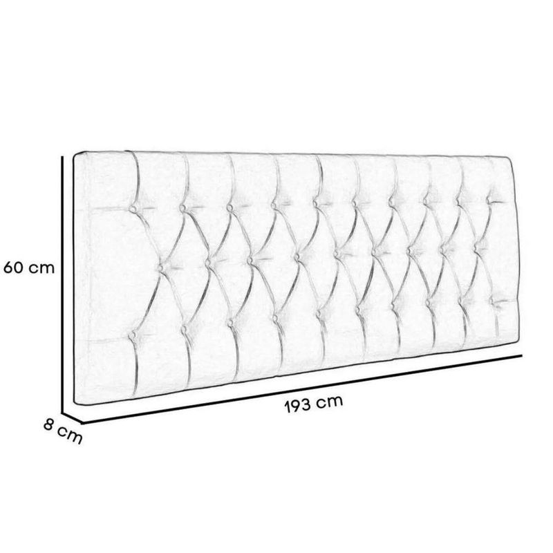 Painel Suspenso Cabeceira Dubai 1,93m Para Cama King Size Suede Bege - Aurora LineCabeceira Estofada - Aurora LineValorize o seu quarto com elegância com a Cabeceira Estofada! Se você está em busca de um item que traga conforto, sofisticação e um toque de modernidade para o seu ambiente, essa é a escolha perfeita.A Cabeceira Estofada é um produto de alta qualidade, feito com materiais selecionados e duráveis. Sua estrutura é produzida em madeira de pinus e eucalipto, garantindo resistência e estabilidade. Além disso, é revestida com espuma de alta densidade, proporcionando um conforto excepcional.Com um design moderno e sofisticado, a Cabeceira Estofada se adapta perfeitamente a qualquer estilo de decoração. Seja para um quarto ou para um canto alemão, ela traz beleza e elegância para o ambiente. Seu acabamento impecável e detalhes cuidadosamente pensados fazem dela um item único.Além de sua estética encantadora, a Cabeceira Estofada também é extremamente funcional. Ela oferece um suporte confortável para a cabeça e as costas, permitindo que você desfrute de momentos de relaxamento e descanso. Seja para ler um livro, assistir TV ou simplesmente relaxar, essa cabeceira é perfeita para tornar esses momentos ainda mais agradáveis.Características:- Largura: 193 cm;- Altura: 60 cm;- Profundidade: 8 cm;- Produto estofado;- Produzido em Madeira de Pinus e Eucalipto.Observações:- Não acompanha kit frame para fixar no box;- Limpar com flanela limpa e seca. Não molhar o móvel e não expor em lugar úmido ou próximo de fontes de calor. Não usar produtos abrasivos;- As imagens ambientadas são meramente ilustrativas e podem apresentar itens que não compõe o produto;- Objetos decorativos que aparecem na foto não acompanham o produto;- As cores do produto podem variar de acordo com o monitor, a iluminação do ambiente, ou sua percepção visual;- Confira as dimensões antes da compra e certifique-se de que o produto passará por elevadores, portas e corredores, já que nossa entrega não inclui a subida de lances de escada, ou o lançamento de produtos;- Ao receber seus produtos, verifique no ato do recebimento qualquer dano na embalagem. Caso tenha alguma avaria, favor não assinar o comprovante de recebimento (A transportadora tem obrigação de esperar a conferência);- Produto para uso residencial em ambiente interno, não devendo ficar exposto diretamente ao sol, calor e umidades excessivas.