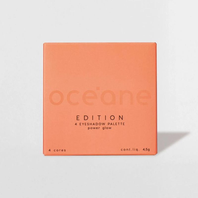 Paleta de Sombras 4 Eyeshadow Palette Power Glow Océane 4,5GSe você gosta de uma make com muito brilho e sofisticação, vai adorar conhecer a 4 Palette Edition Power Glow. Com cores modernas e impactantes, nenhuma maquiagem vai passar despercebida com este quarteto de sombras luminosas!Primeiro, vamos aplaudir sua fixação incrível. Feita com pigmentos ultratecnológicos, sua make vai durar muito tempo na pele sem borrar ou transferir. Isso sem falar que dá para construir camadas e deixar o acabamento ainda mais poderoso.Cores:Pearl Vanilla; Eletric Pink; Terracota; PeachModo de Usar:Escolha as tonalidades da 4 Eyeshadow Palette Power Glow Edition que você irá usar e aplique em toda a região das pálpebras com a ajuda de um pincel, esfumando bem no côncavo e garantindo um esfumado lindo, com degradê, para dar um up no seu visual.Cuidados:Em caso de irritabilidade, suspenda o uso e procure auxílio médico. Manter o produto fechado em temperatura ambiente. Uso externo. Mantenha fora do alcance de crianças.