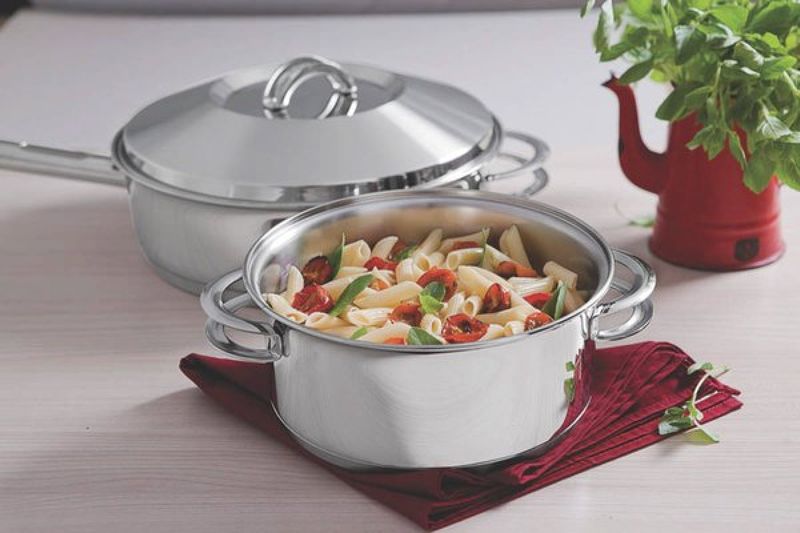 Panela Caçarola 24cm 4,7L Grande Rasa Tramontina Solar Aço Inox Fundo Triplo Tampa Alças Tramontina