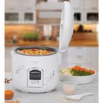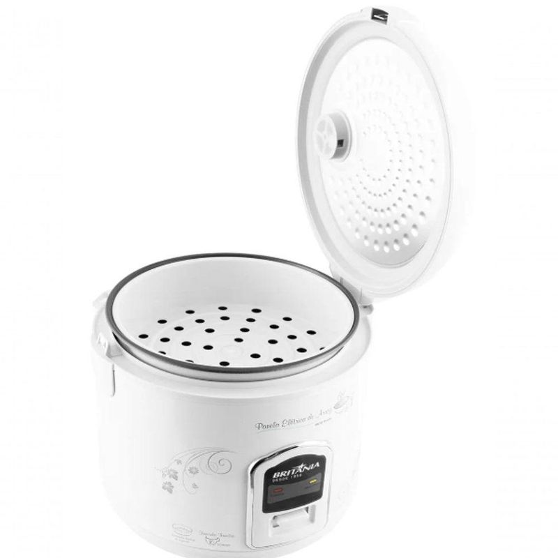 Panela De Arroz Britania Faz 10 Xicaras 700w Banco 127vAlimento tradicional da culinária brasileira, o arroz é apreciado em quase todas as casas espalhadas pelo país. Entretanto, há diversas maneiras de prepará-lo, com diferença de ingredientes, temperos e, agora, de forma de preparo. A Panela Elétrica de Arroz Britânia é linda, com estampas florais e detalhes na cor vermelho e vai deixar sua cozinha ainda mais bonita e equipada. Com capacidade total para 10 xícaras de arroz, ela faz receitas de para todos os tamanhos, inclusive o tamanho família. É só colocar o arroz, a água e seguir os procedimentos de uso, além de arroz, você pode fazer outras receitas, como arroz integral, arroz à grega, risotos e até arroz doce. Versátil, com a Panela Elétrica de Arroz Britânia você consegue preparar deliciosos mingaus, fondue de queijo e muito mais. Ela é capaz de conservar o aroma e o sabor dos alimentos. Acompanha bandeja perfurada para você preparar legumes e verduras no vapor, mantendo os nutrientes e vitaminas dos alimentos, sem perder o sabor. Mantém o arroz aquecido após pronto e com cabo removível, pode ser levada à mesa na hora de servir. A tigela é antiaderente, super fácil de limpar. É só colocar os ingredientes na panela, seguir as instruções de uso e deixar que ela faça o por você, assim fica livre para realizar outras atividades. Com a Panela Elétrica de Arroz Britânia você faz refeições completas com o seu tempero preferido para a família toda. Destaques: Capacidade para 10 xícaras de arrozTigela com revestimento antiaderenteLuzes indicadoras de funcionamentoFaz diversos tipos de arrozCozinha legumes e verdurasBandeja perfurada para cozinhar no vaporAcompanha colher e copo medidorTampa vedada com alça, botão de travamento e saída de vaporTampa com visor em vidro para acompanhar o preparo do alimentoColetor de águaDimensões:Consumo de energia (kW/h): 0,7Potência: 700WCapacidade de alimentos(g): 10 xícaras de arrozVoltagem: 110V ou 220V não é bivoltDimensões: (AxLxP) 28x28x27,6 centímetrosPeso: 2,44 Kilos Embalagem:1 Panela Elétrica Britânia1 Manual de instruções1 Certificado de garantia1 Bandeja perfurada1 Colher e copo medidor