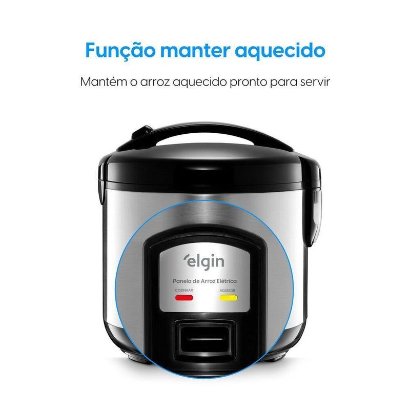 Panela De Arroz Elétrica 10 Xícaras 1,8L 700W 220V - ElginExperimente a praticidade e eficiência da Panela de Arroz Elétrica Gran Rizzo da Elgin e transforme suas refeições em momentos ainda mais especiais. Com capacidade para 10 xícaras, essa panela é perfeita para atender às necessidades das famílias.Com potência de 700W e voltagem de 110V, você terá seu arroz pronto em um piscar de olhos, sem complicações: basta apertar um botão e pronto. Para garantir que o alimento esteja sempre na temperatura ideal, a função Manter Aquecido é indispensável.A tampa basculante com sistema de trava oferece ainda mais praticidade e adiciona um toque elegante à sua cozinha. Além do arroz, a panela permite o preparo fácil e prático de diversos alimentos, como macarrão e legumes.A limpeza é simples e rápida graças à cuba antiaderente. O produto acompanha acessórios que facilitam o uso no dia a dia: colher, copo medidor e bandeja para preparo no vapor.Adquira agora a Panela de Arroz Elétrica Gran Rizzo da Elgin e desfrute de refeições deliciosas e sem complicações todos os dias.