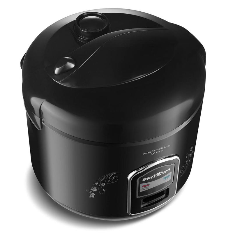 Código do Fornecedor: 66402060Marca: BritâniaConteúdo da embalagem: 1 Panela de Arroz Elétrica PA5 Britânia Preta Função Aquecido Com Acessórios 220V Prepare o arroz perfeito com facilidade e rapidez com a Panela de Arroz Britânia PA5 Prime Preta. Desfrute de um eletrodoméstico prático, compacto e fácil de usar que te ajuda a criar refeições deliciosas e nutritivas para o dia a dia. Conheça seus benefícios:Cozimento perfeito: Arroz sempre soltinho e no ponto certo, sem precisar ficar mexendo.Fácil de usar: Basta adicionar o arroz e a água, ligar a panela e prontoPrática e compacta: Ideal para cozinhar pequenas porções de arroz.Revestimento antiaderente: Facilita a limpeza e evita que o arroz grude.Copo dosador e espátula inclusos: Para mais praticidade na hora de preparar o arroz.Tampa vedada com botão de travamento: Garante segurança durante o cozimento.Luz indicadora de funcionamento: Indica quando a panela está ligada e quando o arroz está pronto.A Panela de Arroz Britânia PA5 Prime Preta é perfeita para quem busca:Praticidade e economia de tempo na cozinha.Arroz sempre saboroso e no ponto certo.Um produto durável, compacto e de alta qualidade.Invista em sua cozinha e experimente a diferença Especificações técnicas:Potência: 400WMaterial da panela: Aço InoxMaterial da tampa: PlásticoCapacidade: 5 xícaras de arrozDimensões: 24 x 23 x 22 cmPeso: 1,4 kg Dicas para usar sua Panela de Arroz Britânia PA5 Prime Preta:Lave a tigela antes de usar pela primeira vez.Meça a quantidade de arroz e água de acordo com a receita desejada.Adicione o arroz e a água na tigela.Feche a tampa e ligue a panela.A panela desligará automaticamente quando o arroz estiver cozido.Deixe o arroz descansar por alguns minutos antes de abrir a tampa.Sirva o arroz e aproveite! Garantia: 12 meses