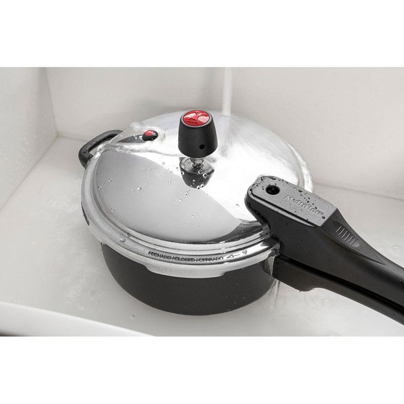 A Panela de Pressão Quartzo Versátil da Multiflon é tudo o que você precisa na sua cozinha!Produzida em alumínio certificado e revestida com exclusivo Antiaderente Multiflon Ultra7, a Panela de Pressão conta com cabo em baquelite resistente a altas temperaturas e fundo retificado com efeito antideslizante oferecendo mais segurança no manuseio.O Antiaderente Multiflon Ultra7, desenvolvido para uso nos produtos Multiflon e é um revestimento antiaderente extremamente resistente estudado para uso superintenso, o selo Ultra7 é garantia de alta qualidade em antiaderência e resistência, livre de PFOA.
