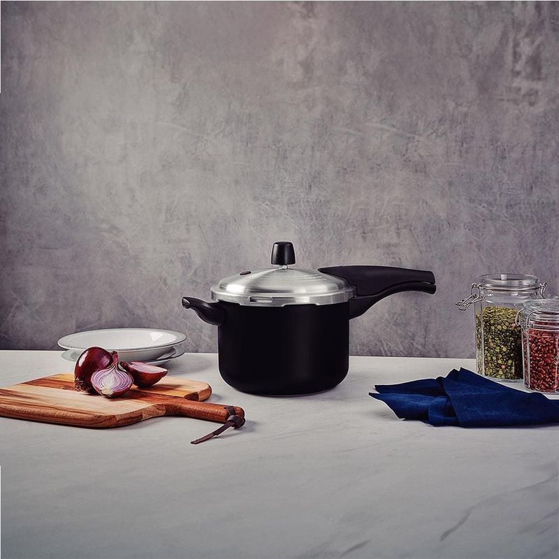 Com a Panela de pressão Tramontina Vancouver Effect em alumínio com revestimento interno e externo em antiaderente Starflon Max com 4,5 litros você ganha um aliado de alta qualidade para o preparo das suas refeições.Com ela, suas receitas serão um sucesso absoluto e ficam prontas com maior rapidez.Com tampa de alumínio com acabamento externo polido e interno satinado, ela proporciona um encaixe perfeito e mantém a pressão ideal durante todo o preparo das refeições. Para garantir sua segurança, a panela conta com alças e cabos superiores e inferiores em baquelite antitérmico, oferecendo assim, maior conforto e estabilidade ao manuseá-la.Versátil, ela ainda pode ser utilizada em diferentes tipos de fogões, sejam eles a gás, elétricos ou vitrocerâmicos - resistência elétrica.Escolha as panelas de pressão Tramontina Vancouver e tenha um item que se adapta ao seu estilo de vida na cozinha e eleva suas habilidades culinárias!