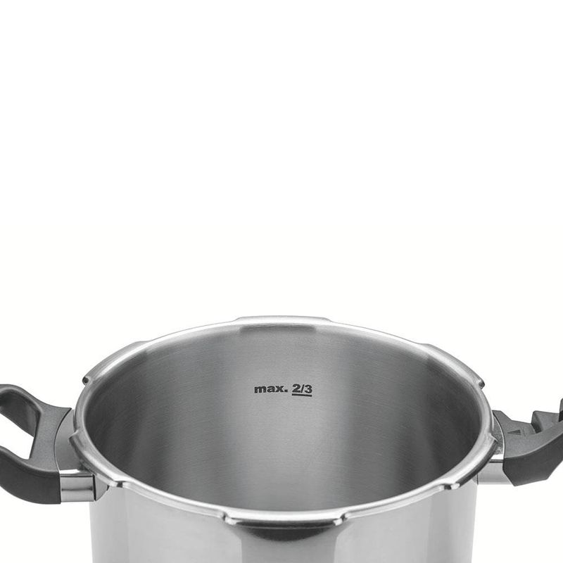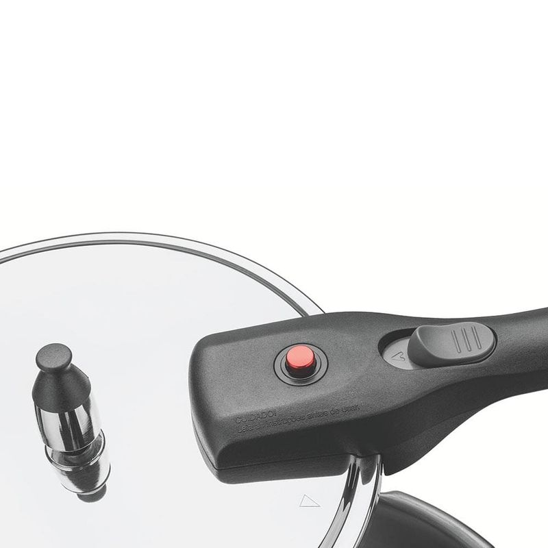 Se você está em busca de mais praticidade e qualidade para preparar suas refeições, certamente essa incrível Panela de Pressão 6L Brava da Tramontina é a escolha perfeita! Com ela, você poderá cozinhar feijão, lentilha, grão-de-bico, além de carnes e outros tipos de alimentos, tudo de forma muito mais prática, fácil e rápida! Ela possui fabricação em Aço Inoxidável com Fundo Triplo, ou seja, conta com uma camada em Aço Inox 18/10 que entra em contato com o alimento sem soltar partículas ou resíduos, sendo extremamente higiênico para sua cozinha. Uma segunda camada em Alumínio, sendo essa interna, que serve como condutor de calor, mantendo a temperatura uniforme e garantindo um preparo mais rápido dos alimentos. E por fim, uma camada de Aço Inox Magnético 18/Cr na parte externa, que garante máxima resistência e durabilidade para uma longa vida útil do produto. Além disso, a Panela de Pressão Brava possui alça e cabo antitérmico que garantem segurança e facilidade no manuseio, medidor de capacidade interno para um melhor controle do volume, e sistema de descompressão com cinco dispositivos de segurança, garantindo sua proteção durante o preparo de suas refeições.