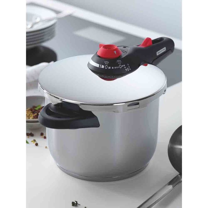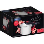 Além de ter um moderno acabamento em Inox, a Panela de Pressão Solar da Tramontina conta com um fundo triplo composto de uma liga de alumínio e aço inox que distribui o calor uniformemente, o cozimento de seus alimentos será mais rápido e econômico. Sua refeição ficará mais saborosa e aquecida por mais tempo.Ela vem com medidor interno de volume para facilitar a medida certa para o preparo de seus alimentos. Sua alça e cabo são antitérmicos, ajudando a evitar queimaduras. Conta com 5 dispositivos integrados de segurança e é aprovada pela norma Nacional de Segurança. Mais praticidade cozinhando em diversos tipos de fogões. A Panela de Pressão Solar pode ser utilizada em fogões por indução, a gás, elétrico e os de vitrocerâmica.