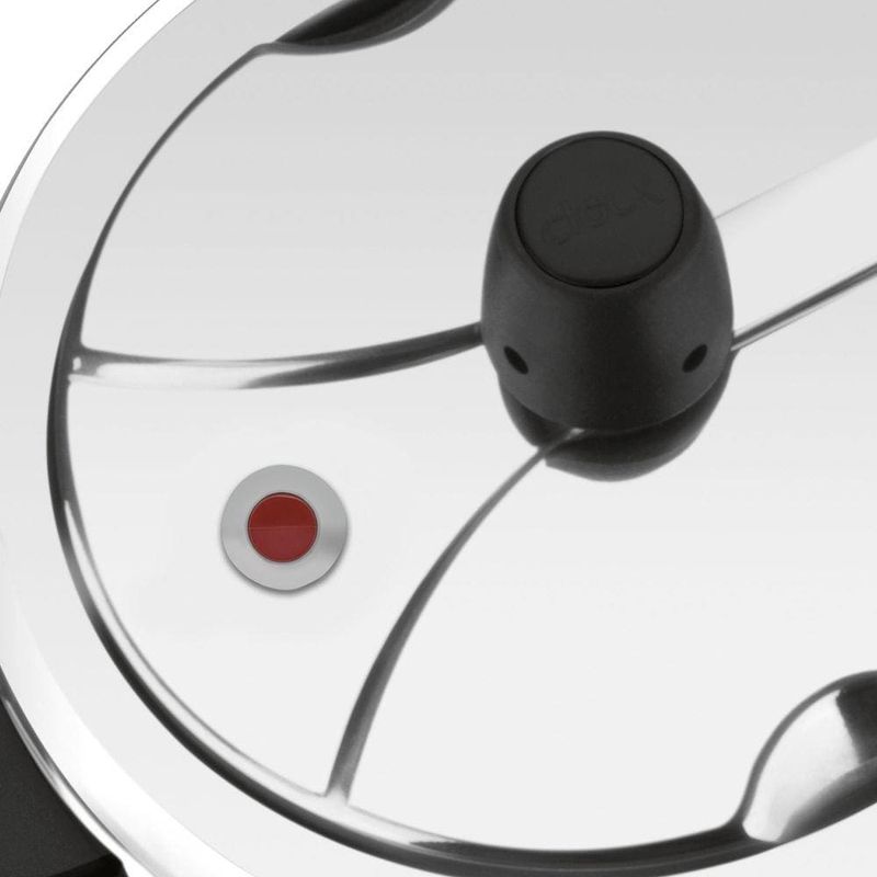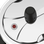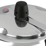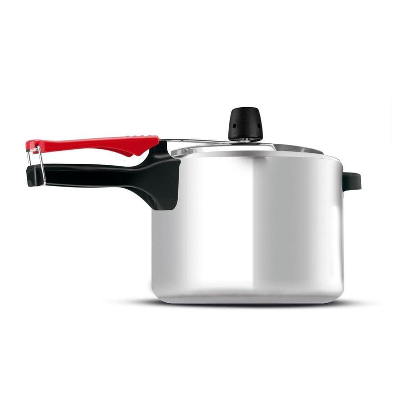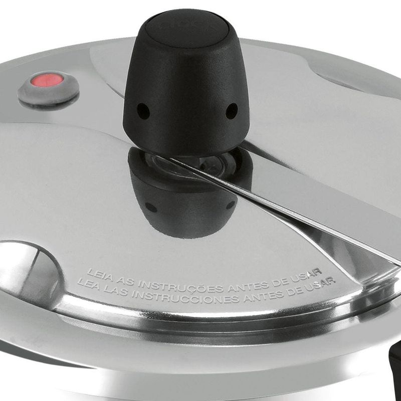 A Panela de Pressão Clock Eco Polida foi projetada para oferecer segurança e praticidade no preparo das suas refeições. Com capacidade de 4,5 litros e um design intuitivo, ela é ideal para famílias pequenas e para quem busca otimizar o tempo na cozinha. Seu sistema de fechamento interno garante mais segurança e facilidade de uso, enquanto o acabamento em alumínio polido proporciona durabilidade e facilita a limpeza.Segurança avançada no dia a dia Entre seus principais atributos, destaca-se o indicador de pressão: quando a panela atinge a pressão ideal, o pino sobe, indicando que a tampa não pode ser aberta. Após desligar o fogo e liberar completamente a pressão interna, o pino abaixa, permitindo a retirada da tampa com total segurança. Outro diferencial é sua válvula de segurança, que libera automaticamente o excesso de pressão, prevenindo acidentes. A Clock Eco também possui um recorte especial que impossibilita o encaixe errado da tampa, centralizando-a corretamente no corpo da panela para garantir uma vedação perfeita.Eficiência e versatilidade no preparo de alimentosCom um design moderno e funcional, essa panela é ideal para cozinhar uma grande variedade de alimentos, como carnes, feijões, legumes e sopas, de forma eficiente e rápida. Seja para preparar receitas tradicionais ou inovar na cozinha, a Clock Eco é uma aliada indispensável para o seu dia a dia.