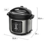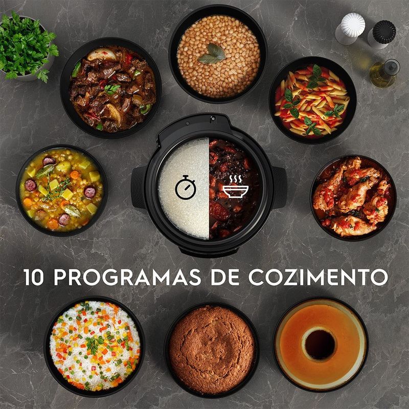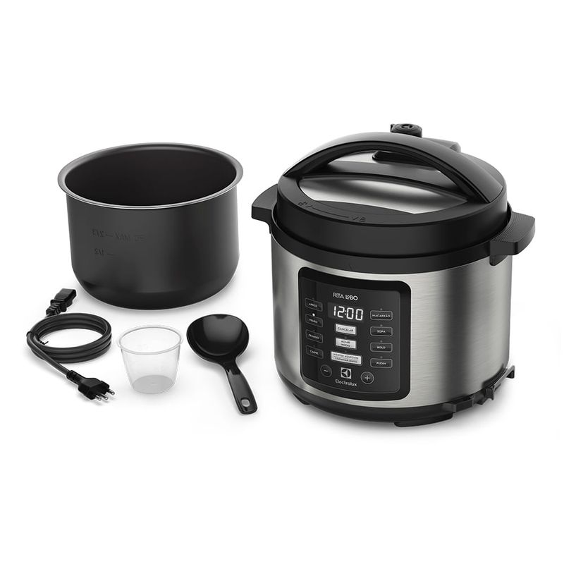 A Panela de Pressão Elétrica Electrolux 5L Experience por Rita Lobo PCC15 oferece soluções práticas e multifuncionais para o seu dia a dia na cozinha, tornando suas receitas mais saborosas e com a tranquilidade que você merece. Possui 10 programas de cozimento em um único produto, além de garantir segurança na hora do preparo para você e toda sua família, as funções predefinidas ajudam a alcançar resultados ainda melhores. Você pode preparar arroz, feijão, frango, carne, macarrão, sopa, bolo, pudim e muito mais. Imagine sair e voltar apara a sua casa com sua receita pronta! Com o Display Digital com Função Programar Preparo é possível! Você pode selecionar o início do preparo para até 24h depois de programado, assim sua receita estará pronta no horário que desejar. E sabe aquele medo de fazer feijão? Agora acabou! A panela de pressão dispõe de 10 dispositivos de segurança para sua proteção, incluindo um aviso sonoro e travamento automático da tampa. A capacidade da Panela interna é de 5L, sendo possível preparar porções generosas, ideal para servir toda a família. O recipiente da panela é removível e antiaderente, o que a torna ainda mais fácil de limpar e evita que o alimento grude no fundo da panela. A Panela de Pressão Elétrica Electrolux PCC15 é Silenciosa e mantém sua cozinha livre de ruídos enquanto prepara suas receitas. Possui Design Sofisticado em aço inox escovado, oferece modernidade e beleza. Dessa forma, permite que você deixe a panela de pressão em sua bancada. Tem acabamento durável. A parte exterior também não absorve manchas de dedo que podem surgir no manuseio do aparelho. Com a Panela de Pressão Elétrica Electrolux 5L Experience por Rita Lobo PCC15 você ainda tem a opção Cozinhar Lento, que é ideal para cozinhar em modo moderado, assim, você pode extrair o máximo do sabor dos alimentos. Além disso, essa função ainda permite que você mantenha suas receitas aquecidas por mais tempo.