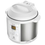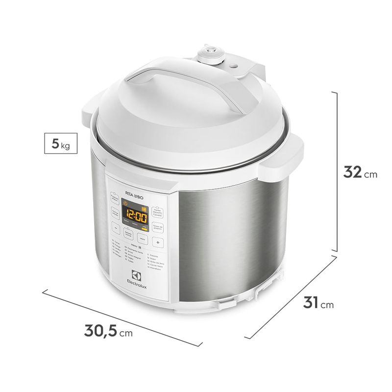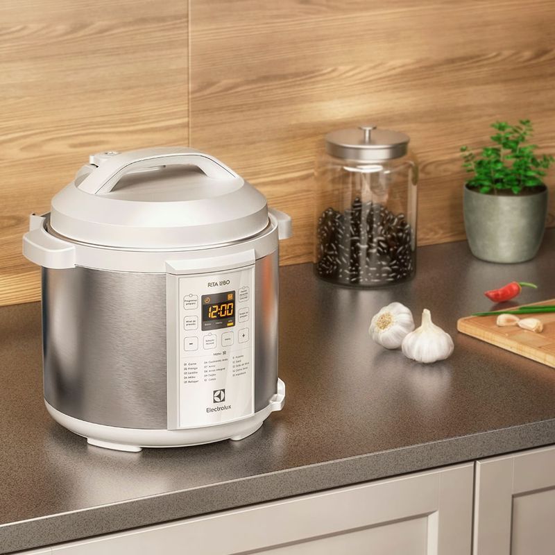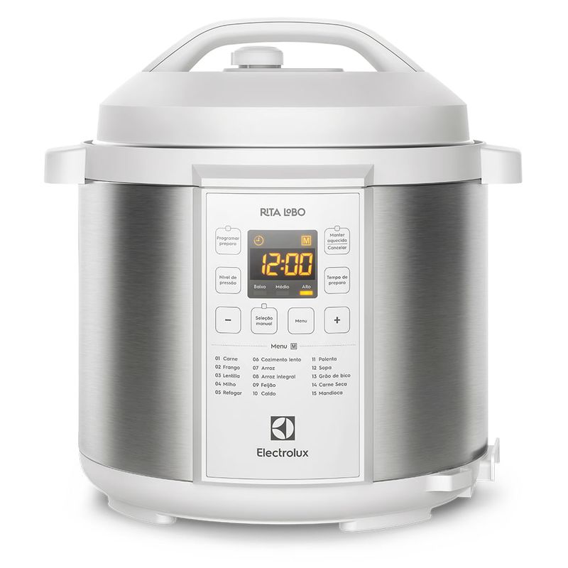 A Panela de Pressão Elétrica 6 Litros Electrolux por Rita Lobo (PCC21) é um produto pensado para transformar sua cozinha com eficiência e economia de tempo. Seja para receitas elaboradas ou pratos rápidos, essa panela tem modos de cozimento pré-programados, grande capacidade e sistemas de segurança para preparar receitas deliciosasConheça mais sobre a Panela de Pressão Elétrica 6 Litros Com 3 níveis de pressão, você seleciona o cozimento ideal para cada alimento. A função Programar Preparo pode ser configurada para iniciar em até 24 horas, enquanto a função Cozimento Lento foi desenvolvida para acentuar o sabor das receitas. Diferenciais da Panela de Pressão Elétrica 6 Litros Electrolux Os principais diferenciais da Panela de Pressão Elétrica 6 Litros, que proporcionam maior eficiência para sua cozinha, são: 15 receitas pré-programadas no menu: explore receitas como milho, frango, polenta, entre outras com apenas um toque no display LED; Seleção manual: a pressão e o tempo de cozimento também podem ser ajustados conforme a sua necessidade; Dispositivos de segurança: 10 mecanismos de proteção que oferecem mais tranquilidade durante o preparo de alimentos; Alta capacidade interna: com 6 litros, a panela interna permite o preparo de grandes porções;Fácil de limpar: a panela antiaderente e o acabamento em aço inox escovado impede o acúmulo de sujeira e a absorção de manchas; Cabo elétrico removível: facilita o transporte da panela da cozinha para a mesa. Tecnologias da Panela de Pressão Elétrica 6 Litros A Panela de Pressão Elétrica 6 Litros Electrolux conta com funcionalidades e tecnologias perfeitas para equipar sua casa, como: 3 níveis de pressão: saboreie alimentos cozidos no ponto ideal, com as opções de níveis baixo, médio e alto; Display Digital: acompanhe facilmente o tempo e o modo de preparo selecionados; Cozimento lento: intensifica o sabor dos alimentos com um preparo mais delicado; Função Refogar: cozinhe e refogue os alimentos na mesma panela, mantendo a consistência e sabor ideal ao preparo dos pratos; Função Programar Preparo: sistema inteligente que agenda o início do cozimento, simplificando a rotina e otimizando a gestão do seu tempo. Principais perguntas sobre Panela de Pressão Elétrica 6 Litros Qual a melhor panela de pressão elétrica 6 litros? A melhor panela de pressão elétrica é que oferece os melhores programas específicos para diferentes alimentos combinado com a maior segurança. O modelo de 6 litros da Electrolux possui 15 receitas pré-programadas, além de funções Refogar e Preparar Preparo, e 10 mecanismos de segurança. Também possui Display Digital, proporcionando pratos deliciosos e mais eficiência de preparo. Panela de pressão elétrica tem dispositivo de segurança? Na Electrolux, qualidade e segurança são prioridades para o desenvolvimento de eletroportáteis. A panela de pressão é equipada com 10 dispositivos de segurança, como a Tampa com Travamento Automático e o Aviso Sonoro. Esses dispositivos asseguram o manuseio e funcionamento do produto durante o processo de pressão. É saudável cozinhar na panela de pressão elétrica? As tecnologias programáveis da panela de pressão elétrica permitem que as receitas sejam cozidas no tempo adequado, sem a necessidade de óleo. O controle de temperatura e eficiência da Panela de Pressão Elétrica 6 Litros Electrolux oferecem cozimento rápido, reduzindo a quantidade de água necessária e proporcionando refeições nutritivas. Quais receitas são indicadas para panela de pressão elétrica? As opções de receitas que podem ser preparadas na panela de pressão elétrica 6l são infinitas, de acordo com a criatividade de cada pessoa. Além disso, com o auxílio das 15 funções do menu, você prepara uma variedade de receitas, como carnes, frango, lentilha, milho, arroz, feijão, caldo, polenta, sopas, grão-de-bico, mandioca e carne seca, além de selecionar os programas Refogar ou Cozimento Lento. Pode programar a panela de pressão? A Panela de Pressão Elétrica Electrolux tem a função Programar Preparo. Essa tecnologia é indicada para auxiliar pessoas com rotinas agitadas ou que desejam selecionar o melhor horário das refeições. A programação pode ser feita diretamente no display para início em 2 horas ou com até 24 horas de antecedência.