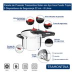 A panela de pressão Solar Tramontina é a escolha ideal para quem busca eficiência e praticidade na cozinha. Com capacidade de 6 litros, seu design em inox e fundo triplo garantem um cozimento uniforme e rápido, ideal para preparar desde feijões até carnes suculentas. Com dimensões de 23,1 cm de altura, 45 cm de largura e 24,7 cm de diâmetro, ela se adapta facilmente a diferentes tipos de fogões, incluindo indução. Seu peso de 3,2 kg proporciona uma manuseabilidade confortável, tornando o processo de cozinhar ainda mais agradável. A tampa segura e o sistema de pressão garantem que os alimentos sejam cozidos de maneira segura e eficiente, preservando os nutrientes e sabores. A panela é fácil de limpar, o que a torna uma excelente adição à sua coleção de utensílios de cozinha. Experimente a qualidade e a durabilidade da Tramontina e transforme suas refeições em momentos especiais. Ideal para famílias que valorizam uma alimentação saudável e saborosa, esta panela é um investimento que traz praticidade e sabor ao seu dia a dia.
