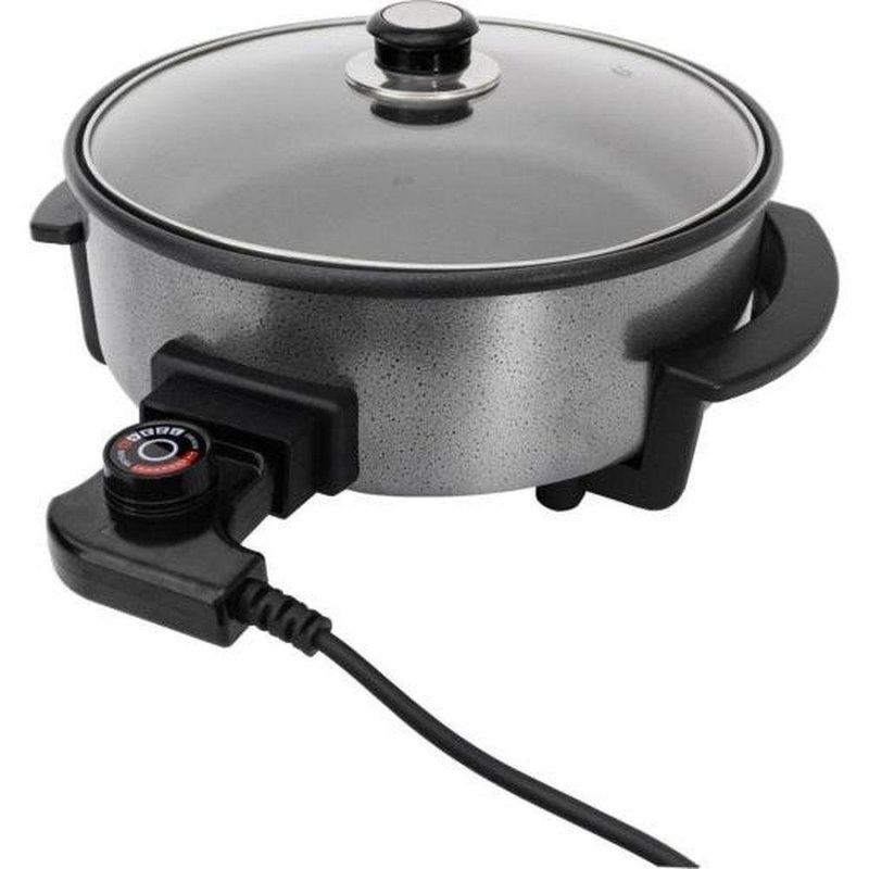Panela Elétrica Agratto Preta 220VCom a Panela Elétrica Agratto Mangiare Preta, você leva praticidade e sabor para sua cozinha! Seu diâmetro de 30cm é perfeito para preparar pizzas, tortas e bolos deliciosos para toda a família. Com capacidade de 3 litros, ela supre as refeições dos seus queridos sem precisar cozinhar em porções menores. Prepare-se para se surpreender com a dupla camada antiaderente que garante maior durabilidade e facilita a limpeza após cada uso.Para acompanhar o cozimento sem interromper o processo, a tampa de vidro permite visualizar o progresso da sua receita. Sua segurança é garantida pelo cabo removível de 1m, que facilita a higienização com tranquilidade.A Panela Elétrica Agratto Mangiare contém um knob com controle de temperatura ajustável, permitindo que você personalize o cozimento de acordo com a necessidade de cada receita. E para o seu bem-estar, o fusível térmico atua como um escudo contra superaquecimento, evitando danos ao produto e oferecendo segurança a cada utilização. A potência de 1500W garante um cozimento rápido e eficiente, otimizando seu tempo na cozinha. Conforto, praticidade e sabor? Com a Agratto Mangiare você tem tudo isso e muito mais!Com a Panela Elétrica Agratto Mangiare Preta, você leva praticidade e sabor para sua cozinha! Seu diâmetro de 30cm é perfeito para preparar pizzas, tortas e bolos deliciosos para toda a família. Com capacidade de 3 litros, ela supre as refeições dos seus queridos sem precisar cozinhar em porções menores. Prepare-se para se surpreender com a dupla camada antiaderente que garante maior durabilidade e facilita a limpeza após cada uso.Para acompanhar o cozimento sem interromper o processo, a tampa de vidro permite visualizar o progresso da sua receita. Sua segurança é garantida pelo cabo removível de 1m, que facilita a higienização com tranquilidade.A Panela Elétrica Agratto Mangiare contém um knob com controle de temperatura ajustável, permitindo que você personalize o cozimento de acordo com a necessidade de cada receita. E para o seu bem-estar, o fusível térmico atua como um escudo contra superaquecimento, evitando danos ao produto e oferecendo segurança a cada utilização. A potência de 1500W garante um cozimento rápido e eficiente, otimizando seu tempo na cozinha. Conforto, praticidade e sabor? Com a Agratto Mangiare você tem tudo isso e muito mais!