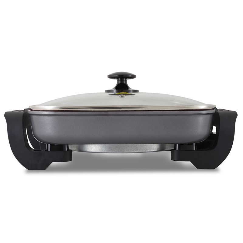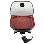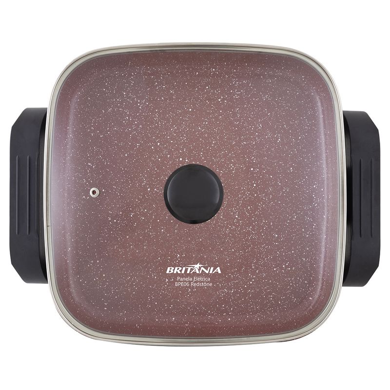 A Panela Elétrica Britânia Multifunções BPE06 Redstone vai deixar a hora de cozinhar muito mais fácil e prazerosa! Com ela você frita, cozinha, aquece, assa, tosta, gratina, grelha e refoga. Revestida com cerâmica Redstone, a Panela Elétrica BPE06 é mais saudável, durável, resistente e fácil de lavar, além de preservar o sabor e os nutrientes dos alimentos. Seu seletor de temperatura é removível e os pegadores são de toque frio, possibilitando que a panela seja levada à mesa. Com capacidade para 3,5L e tampa de vidro, é possivel acompanhar o preparo dos alimentos sem se preocupar com respingos pela bancada. Design moderno, eficiência e beleza para sua cozinha. Conte com a Panela Elétrica Britânia Multifunções BPE06 Redstone. • Prepara diversos tipos de alimentos • Panela com revestimento antiaderente cerâmico “Redstone” • Seletor de temperatura removível • Revestimento livre de PFOA, PTFE e PFOS • Tampa de vidro temperado • Alças laterais c/ toque frio • Base antiderrapante • Volume útil: 3 litros • Volume máximo: 3,5 litros • Luz indicadora de funcionamento