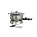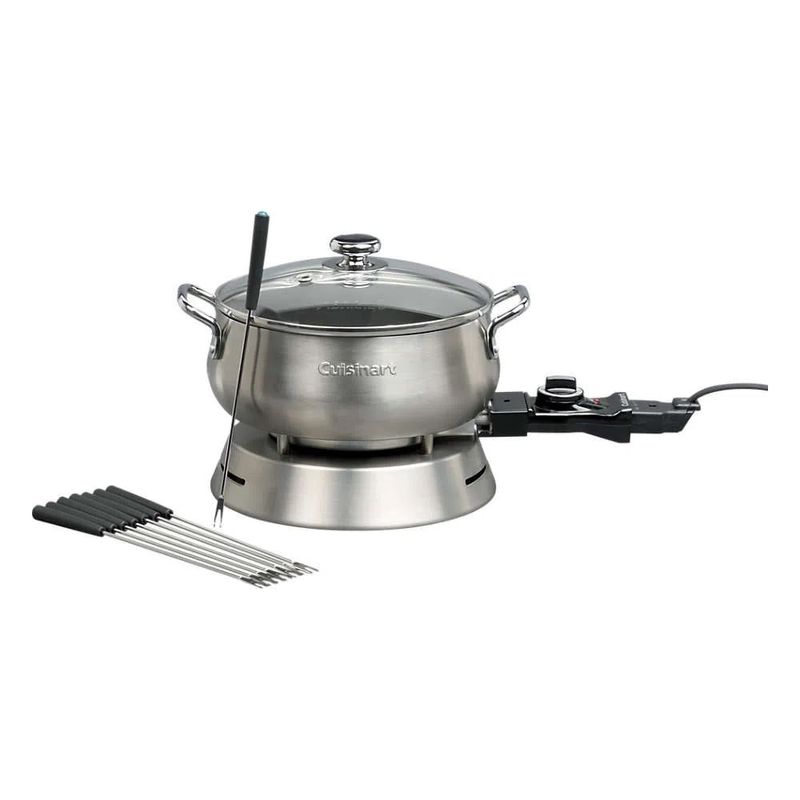 Panela Elétrica com Acessórios para Fondue Inox 220V Prata Cuisinart - CFO-50CBBRBA Panela Elétrica para Fondue Cuisinart CFO-50CBBRB foi criada para transformar o preparo e o momento de servir em uma experiência prática, elegante e deliciosa. Desenvolvida com design sofisticado em aço inox escovado, ela une funcionalidade, durabilidade e estilo, tornando-se o destaque de qualquer ocasião — seja um jantar especial, um encontro com amigos ou uma refeição em família.Com capacidade de 2,84 litros e termóstato ajustável com 8 níveis de temperatura (de 44°C a 180°C), essa panela é perfeita para preparar qualquer tipo de fondue — de queijo, carne, chocolate ou doce de leite — e também para manter sopas, risotos e caldos aquecidos durante todo o serviço. Seu sistema de aquecimento encapsulado distribui o calor de forma uniforme, garantindo que o alimento permaneça na temperatura ideal por mais tempo.A tampa de vidro temperado permite acompanhar o preparo sem abrir a panela, enquanto o revestimento antiaderente interno facilita a limpeza e evita que os alimentos grudem. Todos os componentes são removíveis e podem ser lavados facilmente em água corrente, garantindo praticidade após o uso.Para completar, a Cuisinart inclui acessórios exclusivos, como garfos com identificadores coloridos e aro de suporte, proporcionando organização e comodidade para servir vários convidados com elegância.Principais Benefícios 8 regulagens de temperatura (44°C a 180°C): ideal para fondues doces, salgados e outros preparos. Versatilidade: aquece e mantém sopas, risotos e caldos na temperatura ideal. Revestimento antiaderente: fácil de limpar e evita que o alimento grude. Tampa de vidro temperado: permite visualizar o preparo sem precisar abrir. Sistema de aquecimento encapsulado: distribui o calor uniformemente. Acessórios inclusos: 8 garfos com identificadores coloridos e aro de suporte. Design elegante em aço inox escovado: combina com qualquer ambiente e ocasião.Imagens meramente ilustrativas.