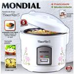Panela Elétrica De Arroz Mondial 400W 5 Xícaras 110V Branca Npe05Panela Elétrica de Arroz Mondial Branca 400W 5 XícarasA Mobilar Eletro está no mercado há mais de 25 anos inovando em produtos e estabelecendo uma relação de confiança!A prática e charmosa Panela Elétrica de Arroz Mondial Bianca Rice NPE-05 vai te conquistar. Moderna, fácil de usar e com layout exclusivo, leva mais charme, beleza e versatilidade para sua cozinha.Muito além do arroz branco soltinho. Você faz diversas versões do arroz, como o carreteiro, por exemplo. Surpreenda e faça risotos, paella, suflê de arroz, almôndegas, arroz doce e muito mais.Fácil de usar e manusear, a Bianca Rice NPE-05 tem capacidade para até 5 xícaras, possui lâmpada piloto que aviso o funcionamento do produto , função aquecer que mantém o arroz sempre quentinho por até 8 horas e acessórios que ajudam o preparo de suas receitas.Completa, acompanha o acessório cozi vapor, indicado para cozinhar legumes e verduras a vapor, enquanto prepara o arroz. Tem revestimento antiaderente que facilita a limpeza da cuba.Perfeita para seu dia a dia e para dias que exigem aquela receita mais elaborada. Aliás, para enfeitar sua mesa, basta retirar o fio removível e levá-la direto à mesa para servir seus convidados e decorar com exclusividade.Antiaquecimento externo: NãoCaracterísticas Gerais:- Prática- Fácil de usar- Preserva o sabor- Moderna e segura- Tampa basculante com travamento- Alça para facilitar - Coletor de vapor: recolhe a Água condensada durante o funcionamento do produto- Função aquecer: mantém o arroz aquecido por até 8 horas- Válvula de saída de vapor- Acessório Cozi Vapor: permite o preparo de legumes e verduras ao vapor- Revestimento antiaderente: fácil de limpar- Capacidade: 5 xícaras- Decoração exclusiva: mais charme e beleza- Material Metal e PPLâmpada piloto: SimPorta-fio: NãoDesligamento automático: simConteúdo da embalagem:01 Arrozeira mondialCompre agora mesmo com a Mobilar Eletro!