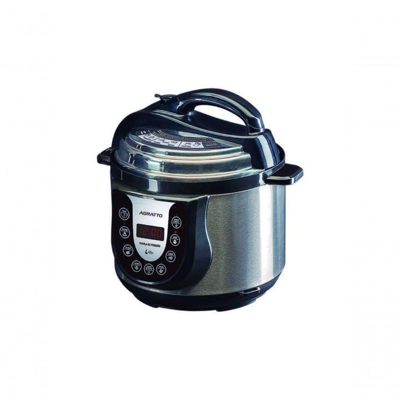 Panela Eletrica De Pressao Agratto 4l Ped01 110VPrepare refeições saborosas e saudáveis com muita praticidade e utilizando a Panela Elétrica de Pressão Agratto 4L. Adeus às longas horas de cozimento! Com essa panela, seus feijões, arroz, carnes e diversos outros pratos ficarão prontos em tempo recorde, mantendo todo o sabor e nutrientes dos alimentos. Sua vida na cozinha fica mais fácil e organizada com o painel digital intuitivo que oferece 6 receitas pré-programadas e timer com desligamento automático.Conte com a tranquilidade de 10 dispositivos de que protegem você durante o uso. A válvula de controle de pressão e o controle da temperatura interna garantem o cozimento perfeito, enquanto a função de manter o alimento aquecido permite organizar seu dia sem perder a qualidade da refeição. Para facilitar a limpeza e o uso diário, a panela possui design prático e acompanha colher, copo medidor e reservatório de água de vapor.Escolha a voltagem ideal para sua casa (127V) e conquiste agilidade e sabor em cada refeição com a Panela Elétrica de Pressão Agratto.Prepare refeições saborosas e saudáveis com muita praticidade e utilizando a Panela Elétrica de Pressão Agratto 4L. Adeus às longas horas de cozimento! Com essa panela, seus feijões, arroz, carnes e diversos outros pratos ficarão prontos em tempo recorde, mantendo todo o sabor e nutrientes dos alimentos. Sua vida na cozinha fica mais fácil e organizada com o painel digital intuitivo que oferece 6 receitas pré-programadas e timer com desligamento automático.Conte com a tranquilidade de 10 dispositivos de que protegem você durante o uso. A válvula de controle de pressão e o controle da temperatura interna garantem o cozimento perfeito, enquanto a função de manter o alimento aquecido permite organizar seu dia sem perder a qualidade da refeição. Para facilitar a limpeza e o uso diário, a panela possui design prático e acompanha colher, copo medidor e reservatório de água de vapor.Escolha a voltagem ideal para sua casa (127V) e conquiste agilidade e sabor em cada refeição com a Panela Elétrica de Pressão Agratto.