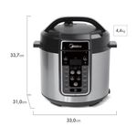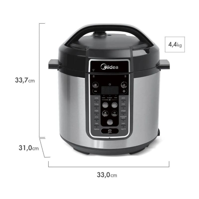 Panela Elétrica Midea de Pressão MasterSteam 6L Produto em conformidade com regulamentação do Inmetro. Todas as informações técnicas divulgadas são de responsabilidade exclusiva do fabricante/fornecedor. A cor do produto pode variar de acordo com as configurações do seu monitor.