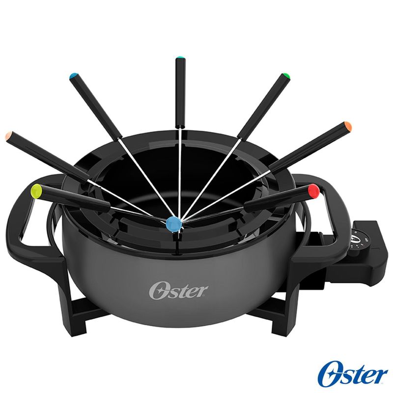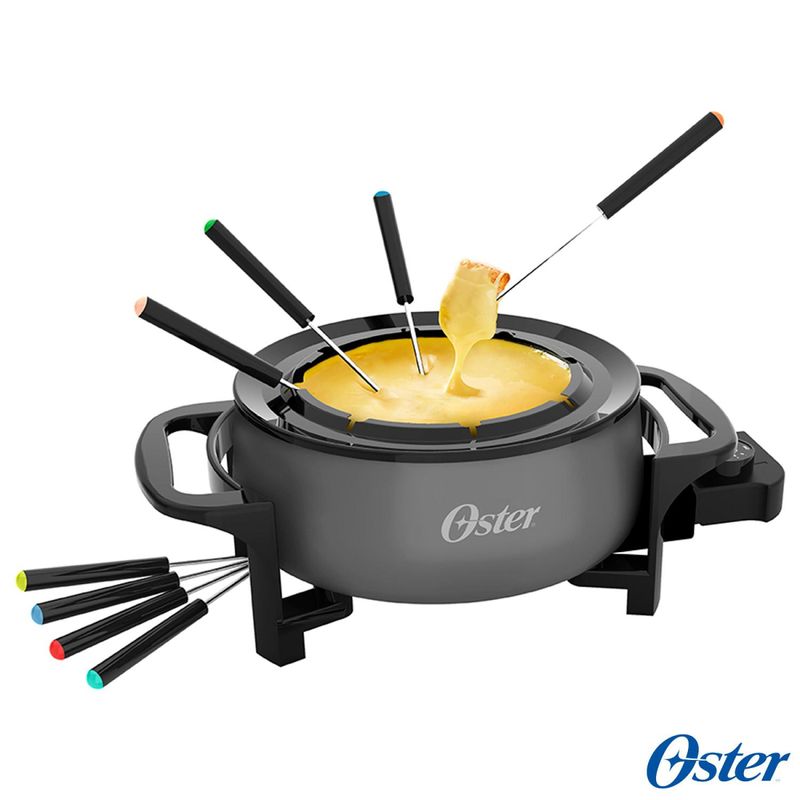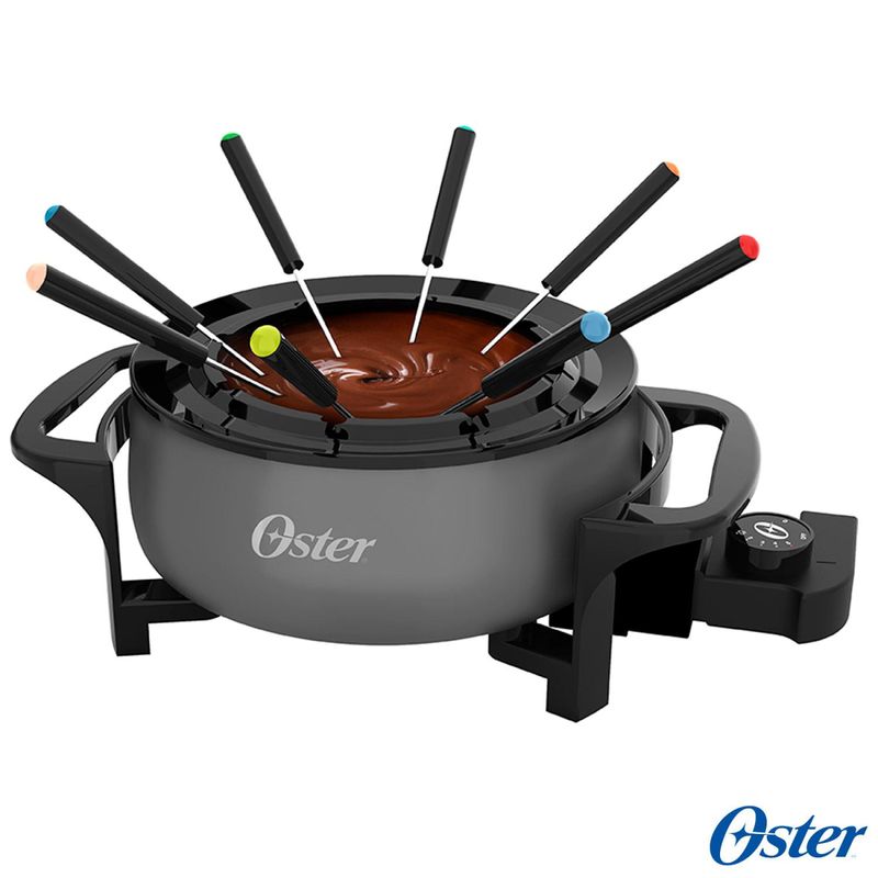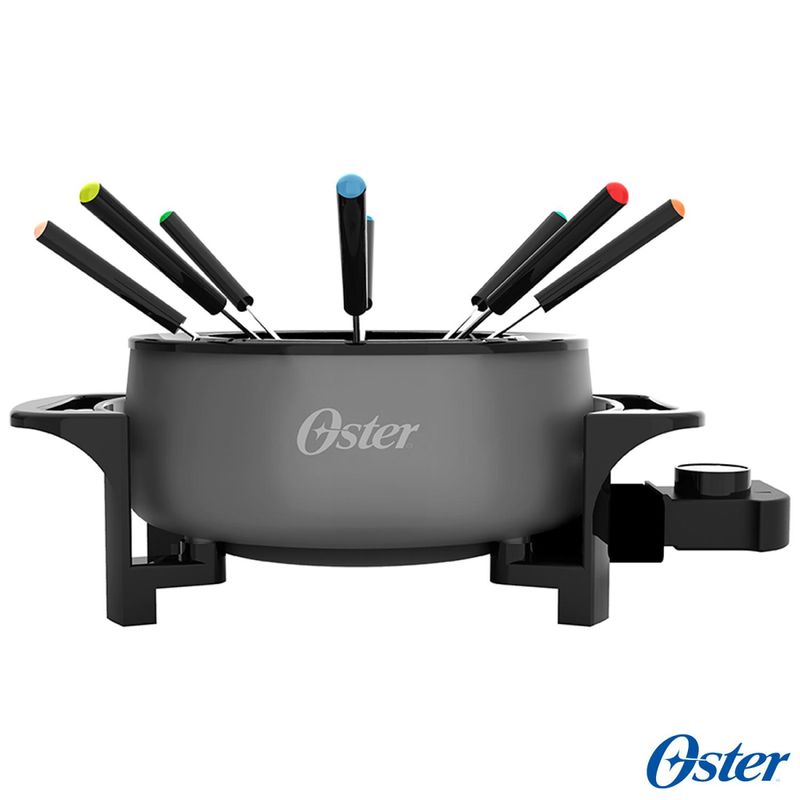 A Nova Panela Elétrica para Fondue Oster permite preparar receitas salgadas e também sobremesas com praticidade, rapidez e alto rendimento. Alta potência e RENDIMENTODesenvolvida para estar à sua disposição na cozinha! Com 1000W de potência, ela vai surpreender você com o resultado e a alta performance. design moderno. Seu acabamento sofisticado é ideal para ir direto para a mesa e deixar o ambiente ainda mais elegante! PRATICIDADE ao usarPossui 4 níveis de temperatura e função Manter Aquecido. Isso permite que você escolha a temperatura ideal para preparar um delicioso fondue para toda a família. PREPARE DOCES E SALGADOSLiberte sua criatividade e faça entradas, jantares ou sobremesas deliciosas com a sua Panela Elétrica para Fondue Oster! Receitas doces ou algadas com muita praticidade. Acessórios, acompanha 8 garfos para você compartilhar esse momento com a família e os amigos.CaracterísticasTipo: Panela Elétrica para FondueFunções: Prepara Fondue de queijo, carne e chocolateCapacidade: 2,4 LitrosSeletor de Temperatura Antiaderente Pode ser levada diretamente à mesaEspecificações TécnicasModelo: OFND100Potência: 1000WVoltagem: 110VCor: CinzaEAN: 7898700212662Garantia: 12 mesesDimensões e PesoDimensões do produto sem embalagem (AxLxP): 271x563x355 mmDimensões do produto com embalagem (AxLxP): 247x341x137 mmPeso do produto sem embalagem: 1,7 KgPeso do produto com embalagem: 7,3 KgItens Inclusos01 Panela Elétrica 08 Garfos