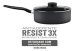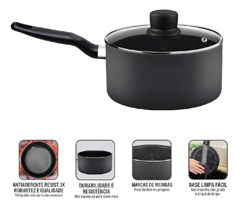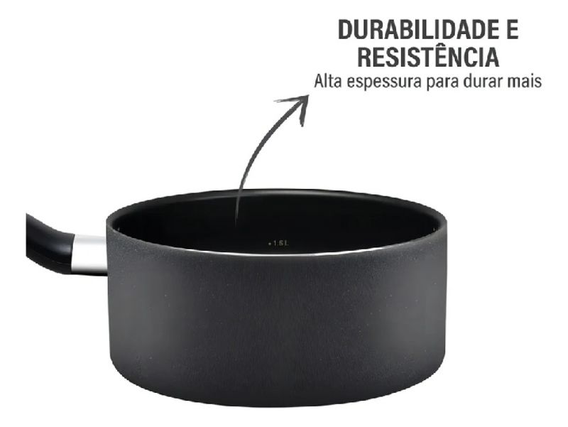 A panela Rochedo Robusta Grafite de 20 cm é a escolha ideal para quem busca praticidade e eficiência na cozinha. Com capacidade de 2,7 litros, seu design circular e elegante na cor grafite combina com qualquer ambiente, tornando o preparo das suas receitas ainda mais agradável. Fabricada em alumínio, essa panela possui um revestimento antiaderente Starflon T1, que garante uma fácil liberação dos alimentos e facilita a limpeza. Compatível com fogões a gás, halógenos e elétricos, é versátil e se adapta às suas necessidades culinárias. A tampa de vidro permite acompanhar o cozimento sem perder calor, enquanto o cabo em plástico proporciona segurança e conforto ao manusear. Com um peso de apenas 840 g, é leve e prática, ideal para o dia a dia na cozinha.