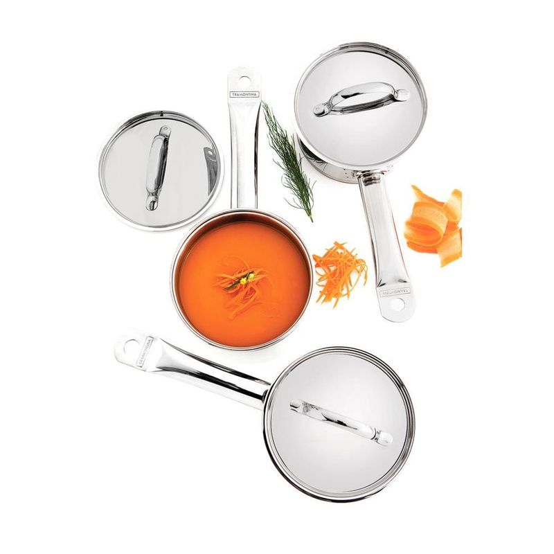 A linha Professional Gourmet da Tramontina une beleza e funcionalidade para o seu lar.Preparar os alimentos com produtos de qualidade torna a sua refeição mais prazerosa e requintada.Panela com fundo triplo (aço inox + alumínio + aço inox) que distribui o calor uniformemente, proporcionando um cozimento mais rápido, economizando energia, deixando os alimentos macios, saborosos e aquecidos por mais tempo.Totalmente feita em aço inox, não solta nenhum resíduo nos alimentos, mantendo-os saudáveis.Seu desenho limpo e sem cantos torna a limpeza muito mais fácil! Não é demais?