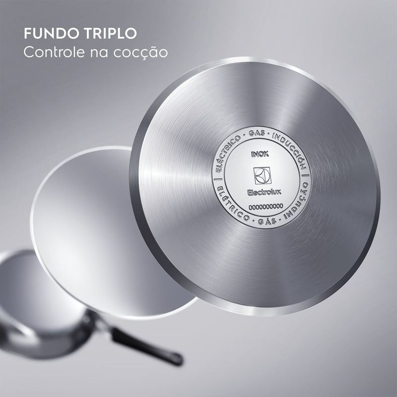 Wok Antiaderente Electrolux Design 28 cm Preparo rápido e uniforme com muita versatilidade Ideal para toda cozinha, agora você conta com o Wok Antiaderente da linha Electrolux Design. Com 28 cm, é uma peça multifuncional e perfeita na hora de refogar, saltear e cozinhar diferentes tipos de alimentos. ALTÍSSIMA QUALIDADE E ESTILO Interior antiaderente Classe A, livre de PFOA, com cabo de silicone antitérmico para conforto e segurança no uso. Feita em aço inoxidável com acabamento escovado, tem design exclusivo Electrolux. A tampa de vidro temperado, com saída de vapor e puxador ergonômico, evita respingos, facilita o preparo dos alimentos e ainda preserva o calor. FUNDO TRIPLO Tecnologia que distribui melhor o calor para um cozimento uniforme e mais rápido, além de manter o preparo aquecido por mais tempo. VERSÁTIL E FUNCIONAL Perfeita para refogar, saltear e preparar receitas de cozimento lento, com o uso de menos óleo. Indicada para pratos como picadinhos, carnes com molho, frango xadrez, yakissoba, risotos, entre outros. Fácil de limpar, também pode ser usada no fogão a gás, indução, elétrico, forno até 180 °C, sem tampa, e na lava-louças. · Inox · Livre de PFOA · Lava-louças · Gás · Indução · Elétrico ESPECIFICAÇÕES TÉCNICAS Tamanho: Ø 28 cm Capacidade: 3,6 L Temperatura máxima: até 180 ºC, sem a tampa