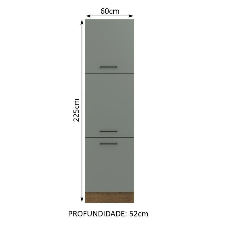 Paneleiro Madesa Agata 60 cm 3 Portas - Rustic/CinzaO Paneleiro de 60 cm da linha Agata da Madesa é desenvolvido com itens de qualidade nobre. Possui três portas com puxadores com alça de alumínio e dobradiças metálicas com amortecimento para fechamento suave.A distribuição interna conta com quatro prateleiras e vão livre para que você possa organizar toda a louça, utensílios, eletroportáteis, alimentos e o que mais preferir.Os pés são em PVC, com regulagem de altura e rodapé removível em MDP de fácil encaixe. Por segurança, é obrigatório fixar este móvel na parede.O acabamento da estrutura é no padrão amadeirado Rustic. As portas são cinzas e a parte interna das costas é branca. O método utilizado é a Pintura Poliéster ecológica com 7 camadas de proteção, exclusiva da Madesa.Itens inclusos:- Um (1) Paneleiro de 225 cm de altura x 60 cm de largura x 52 cm de profundidade com três (3) portas e quatro (4) prateleiras internasEspecificações Técnicas: - Marca: Madesa- Cor: Cinza- Material: Mdp- Linha: Agata- Referência: G26607F9AG- Produto: Balcão de Pia- Dimensões do Produto (LxAxP): 60 cm x 225 cm x 52 cm - Peso Aproximado: 56 Kg- Garantia: 3 meses