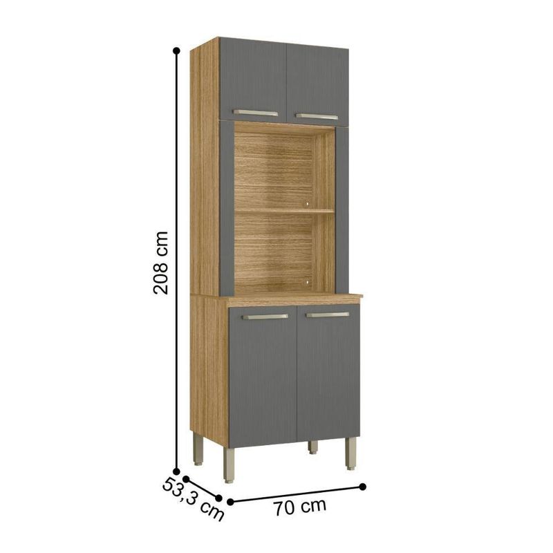 Paneleiro Duplo Forno Sem Gaveteiro Ametista Freijó GrisProduzido em MDP de 15 mm., madeira reconstituída provinda de reservas manejadas para este fim, é um produto ecologicamente correto. Nas quatro portas são utilizadas dobradiças 100% metálicas que garantem facilidade e segurança no abrir e fechar das portas. Dispõe de amplo espaço interno para melhor organizar os objetos da cozinha, além de um micho para microondas e forno elétrico. Os puxadores são ergônomicos em plástico resistente. Em sua base utiliza pés reguláveis em plástico resistente que propicia perfeita montagem mesmo em pisos com pequenos desníveis.Informações do produto:Altura: 208 cmLargura: 70 cmProfundidade: 53,3 cmPortas: Sim (4)Gavetas: NãoNichos: Sim (2)Pés: Sim (4)Prateleiras: Sim (1)Cor: Freijó GrisMaterial: MDPItens inclusos:01 PaneleiroKit completo para montagem e manual de instruçõesGarantia: 3 meses.Informações Complementares:- Verificar o tamanho e detalhes do produto antes da compra.- Fotos meramente ilustrativa.- A transportadora entregará o produto no andar térreo do endereço de entrega.- Avaliar a mercadoria no ato do recebimento e recusar em caso de divergência ou avarias.- Não nos responsabilizamos pela montagem e desmontagem do produto no ato da entrega e devolução, assim como os custos gerados nestas situações.- Sugerimos a contratação de um montador profissional para a montagem do produto. Não nos responsabilizamos por avarias causadas no ato da montagem. Num. Volumes: 1 | Modelo: Ametista | Fabricante: Kits Paraná | Material para Filtro: MDP | Altura do Produto com Embalagem (cm): 21,1 | Peso Produto Com Embalagem (Kg): 47,6 | Width: 53 | Height: 21 | Comprimento Produto com Embalagem (cm): 138,2 | Length: 138 | Acompanha Colchão: Sem Colchão | Weight: 47.6 | REQUIRES_ASSEMBLY: Sim | Largura Produto com Embalagem (cm): 53,2 | Tipo de Cama/Cabeceira: Padrão