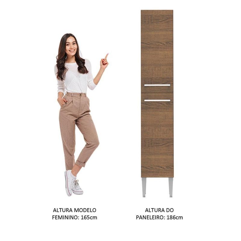 Paneleiro Emilly 2 Portas Rustic MadesaEste Paneleiro Emilly 2 Portas da Madesa, a opção ideal para você complementar a sua cozinha e fazer o total aproveitamento de espaço.Características do Produto:- O móvel conta com duas portas convencionais, com dobradiças metálicas resistentes e puxadores com alumínio. - É ideal para a organização de louças, eletroportáteis e mantimentos. - Os pés em PVC possuem regulagem para compensar os pequenos desníveis do piso.- O acabamento amadeirado Rustic é em Pintura Poliéster de alta resistência, detalhe que confere maior qualidade e durabilidade ao produto.- A pintura é ecológica, livre de vapores que prejudicam a atmosfera.Especificações Técnicas: - Marca: Madesa - Dimensões do Produto (LxAxP): 32 cm X 186 cm X 27 cm- Dimensões da Embalagem (LxAxP): 33 cm X 8 cm X 171,3 cm- Peso da Embalagem: 16,6 kg- Estrutura: 3 Prateleiras; 2 Portas Convencionais- Cor: Rustic- Referência: G263205ZEMItens Inclusos:- 1 paneleiro de 32 cm X 186 cm X 27 cm (LxAxP) com 3 prateleiras internas e 2 portas convencionaisGarantia: 3 meses
