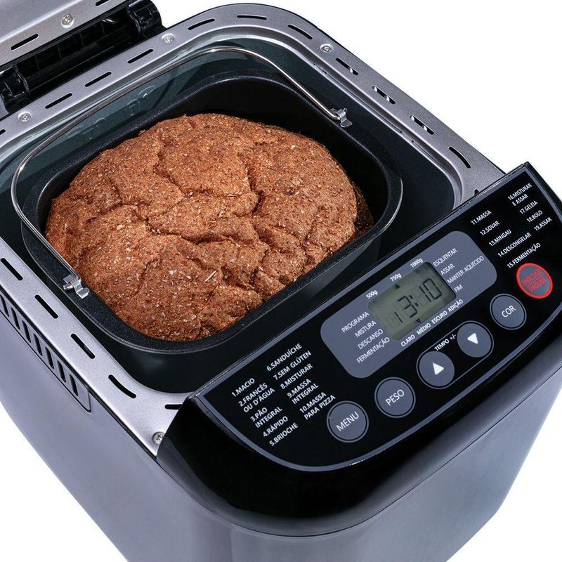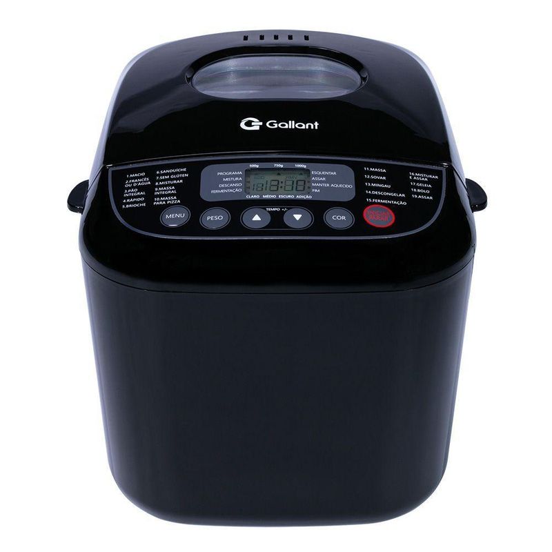 PANIFICADORA 19 PROGRAMAS GALLANT 600W PRETA (GPA1E19A)Deixe o seu dia a dia mais gostoso com a Panificadora Gallant! Ela é a novidade que você precisa para deixar a sua rotina mais prática e saborosa. Ela é ideal para você, pois conta com 19 programas digitais além de possuir revestimento antiaderente e um display LCD intuitivo para você acompanhar o preparo dos seus pães.Imagine acordar todas as manhãs com o aroma irresistível de pão quentinho, com a Função Programar de até 15 horas. Com ela, você pode deixar tudo preparado na noite anterior e desfrutar de pães frescos assim que acordar. Já a função Manter Aquecido, mantém o aquecimento da Panificadora por 60 minutos depois de prontoA Panificadora Gallant possibilita diversos modos de preparo para diferentes tipos de pães, como macio, francês, integral, sem glúten, entre outros. Adapte o tamanho dos pães de acordo com a sua preferência e crie receitas sem sair de casa e tenha total controle sobre os ingredientes utilizados, evitando aditivos artificiais, conservantes e outros ingredientes indesejados, sendo um ponto muito importante para pessoas com restrições alimentares ou dietas específicas.Além de tudo isso, economize o seu bolso ao fazer pão em casa, sem a necessidade de comprar pães de qualidade similar em uma padaria ou supermercado. Você ainda economiza tempo e pode programar a máquina para começar a fazer pão enquanto você realiza outras tarefas.Especificação Técnica:Marca: GallantModelo: GPA1E19A_220PTVoltagem: 220VCor: PretoTipo de tomada (amperes): 10AItens inclusos: Máquina de pão, Forma de pão, Amassador, Copo medidor, Colher medidora, Gancho.Capacidade: 500/750/1000gPotência: 600WTemperatura Mínima e Máxima: -5°C – 55°CTimer: Sim, 15 horasManter aquecido: Sim, 1 horaCor pão / Claro – Médio - Escuro: SimPossui 19 Funções Pré-programadas: Macio / Francês ou D’Água / Pão Integral, Pão Rápido / Brioche / Sanduiche / Sem Glúten / Misturar / Massa Integral / Massa de Pizza / Massa / Sovar / Mingau / Descongelar / Fermentar / Misturar e Assar / Geleia / Bolo / Assar.Painel digital: SimVisor: Visor de vidroRecipiente removível: SimMaterial: PP e MetalForma revestimento antiaderente: SimLuz indicadora: Luz de fundo branca para LCDLuz interna: NãoDimensões Internas (AxLxP): 14 x 17 x 13,5 cmDimensões do produto (AxLxP): 33,1 x 27,8 x 28,8 cmDimensões da Embalagem (AxLxP): 37,5 x 33,3 x 30,8 cmPeso líquido: 4,5 kgPeso bruto: 5,2 kgGarantia: 12 Meses