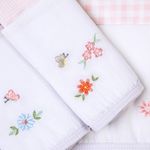 Paninho de Boca Bordados com Prendedor de Chupeta Floralzinho 03 Un - Papi Nosso Paninho de boca Urso Bordados Papi com prendedor de chupeta é extremamente prático, com tecido 100% Algodão extra macio e absorvente. Eles são itens indispensáveis no enxoval do bebê, são usados a todo momento, seja para limpar a boquinha do bebê, limpar a mãozinha, servir de paninho para a mamãe pôr no ombro na hora de arrotar, entre outras inúmeras utilizações. O seu diferencial e excelente característica é o prendedor de chupetas, evitando que a mesma caia no chão ou se perca. Esse é um dos queridinhos das mamães, seu tamanho de 40cm x 40cm é perfeito e ideal para levar em passeios com o bebê. Pacotes com 3 unidades. • Possui INÚMERAS UTILIZAÇÕES como, limpar a boquinha do bebê, limpar a mãozinha, paninho para colocar no ombro na hora de arrotar. • Seu diferencial e excelente característica é o prendedor de chupetas, evitando que a mesma caia no chão ou se perca. • Produto Bordado e Estampado. • Tecido atoalhado 100% Algodão: macio e absorvente. • Nossos produtos são feitos com todo cuidado e carinho. • Medida: 40cm x 40cm. • Contém 3 unidades na embalagem. • Produto de fralda com faixa tricoline