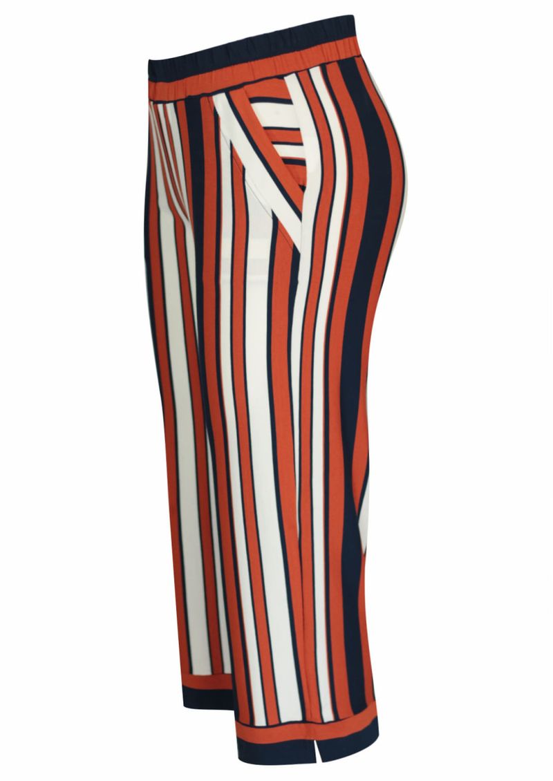 Calça Pantacourt em malha listrada, em tons de Laranja, Marinho e Off White. Cintura médio-alta e cós-elástico. Possui bolsos frontais. Modelagem moderna e confortável. Composição do malha: Confeccionado em 95% Viscose e 5% Elastano. Toque macio. Medidas Aproximadas: P: 88 x 86 x 67 x 102 cm (Comprimento, Cintura, Gancho e Quadril). M: 90 x 92 x 69 x 108 cm (Comprimento, Cintura, Gancho e Quadril). G: 92 x 94 x 71 x 114 cm (Comprimento, Cintura, Gancho e Quadril). GG: 94 x 104 x 73 x 120 cm (Comprimento, Cintura, Gancho e Quadril). XL: 96 x 110 x 75 x 126 cm (Comprimento, Cintura, Gancho e Quadril). Todos os dados informados são aproximados, do peso às medidas. ATENÇÃO PARA AS MEDIDAS, POIS NOSSA MODELAGEM É AMPLA!