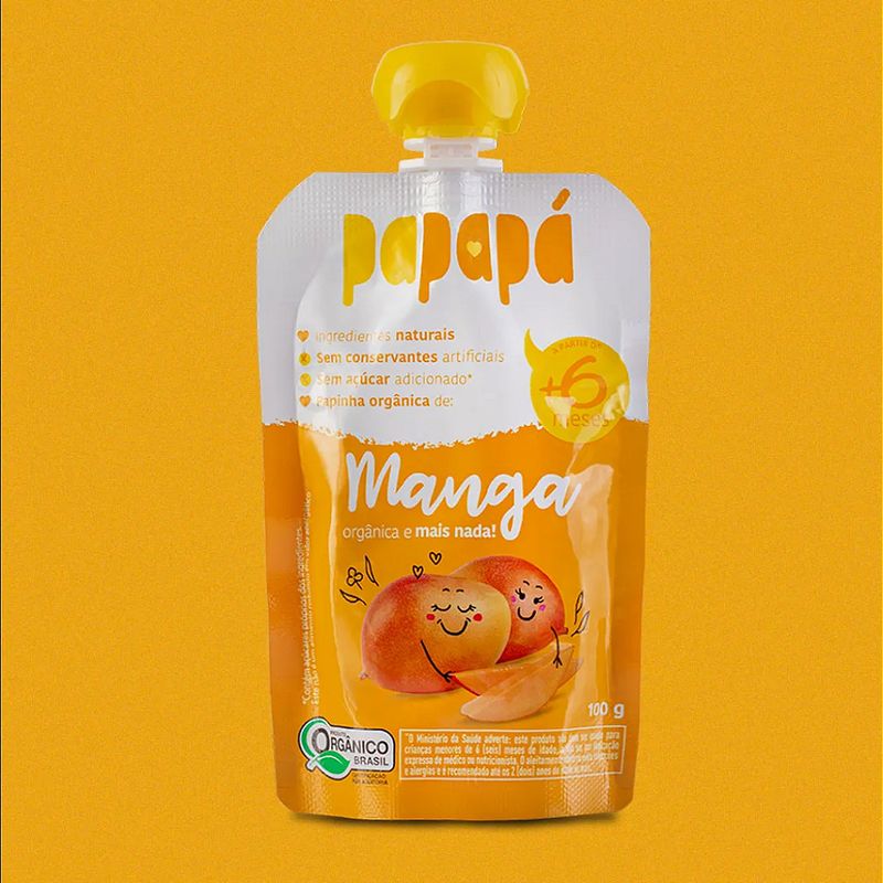 Papinha Orgânica de Manga 100g - Papapá Feitas apenas com ingredientes naturais, nossa linha de Papinhas Orgânicas é perfeita para momentos onde você precisa de praticidade e não quer abrir mão da qualidade na alimentação do seu bebê! Além disso, são: Orgânicas Não contam com açúcar adicionado Livres de conservantes, corantes e aditivos químicos Clean Label (apenas ingredientes que você reconhece) Consumo e Armazenamento: Indicadas para bebês a partir de 6 meses de idade, não havendo restrições para crianças maiores. O produto vem pronto para consumo, deve ser armazenado livre da exposição solar e umidade, sem necessidade de armazenar na geladeira enquanto fechado. Após aberto, é indicado conservar na geladeira e consumir em até 48h. Embalagem: Nossas papinhas são comercializadas em uma embalagem pouch que possui tecnologia especial que conserva o produto por muito mais tempo, preservando todas as características originais de sabor, textura, cor e cheiro do alimento. Seu design permite que o consumo seja feito diretamente na embalagem através de sucção, dispensando o uso de colher. Validade: 20/04/2026 O registro na ANVISA é obrigatório para os alimentos comercializados para bebês. Todos os produtos da Papapá possuem registro na ANVISA, cumprindo todas as exigências rigorosas de segurança e qualidade. Ingredientes: Purê de manga orgânica e suco concentrado de limão.