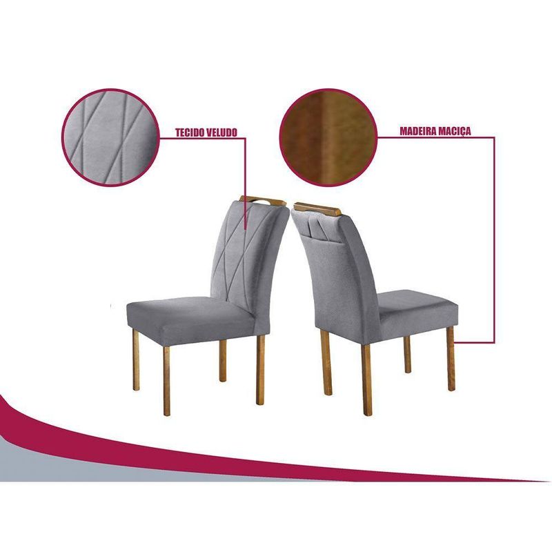 Par De Cadeiras Rubi Madeira Maciça E Veludo Móveis Mix Cinza PrataPar de Cadeiras Rubi em Madeira Macica e Tecido Veludo Azul Turquesa - Moveis MixExclusividade de Fabrica Cadeiras Rubi - Moveis Mix. Com os Produtos Moveis Mix Voce Leva Conforto e Beleza Para o Seu Lar. Design Moderno e Sofisticado. Caracteristicas da Cadeira Material da Estrutura: Madeira Macica de Eucaliptos Tratado, 100 Imunizado e Seco em Estufa. Assento: Espuma D26 Soft Real. Encosto: Espuma D18 Soft Real. Aplique no Encosto(Puxador): Sim. Assento/Pes: Reforcado. Tecido Cadeira: Veludo. Medidas das Cadeiras: Altura: 102cm. Largura: 56cm. Comprimento: 47cm. Capacidade em KG por Assento: Aproximadamente 150kg. Garantia do Fornecedor: 03 meses contra defeito de fabricacao (a contar da data do recebimento da mercadoria). Observacoes! Limpeza: Aspirar o produto para eliminar a poeira, utilizar um pano levemente umedecido. Recomendacoes: Usar em local seco, nao molhar. Evitar exposicao ao sol, para que o produto nao sofra alteracoes na tonalidade e estrutura. Embalagem Cadeiras: Caixa de Papelao (Duas cadeiras montadas por caixa). ATENCAO! Imagens meramente ilustrativas. A tonalidade do produto pode variar entre a imagem de exibicao e o item fisico. Nao nos responsabilizamos pela montagem/instalacao dos produtos. Os objetos que ambientam as fotos nao acompanham o produto. Verifique as dimensoes do produto e certifique-se que o percurso que ele fara ate o local de uso permite sua passagem. Nos nao nos responsabilizamos por transporte de produtos, caso nao caibam em elevadores, acima de tres lances de escada e nao cabendo na passagem das escadas, por icamentos ou desmontagens de produtos. Quaisquer despesas deste tipo ficam a cargo do cliente. Anuncio sujeito a alteracao sem aviso previo. Nossos produtos passam por um rigoroso controle de qualidade para que cheguem ate o cliente em perfeitas condicoes, entretanto, em casos de desacordo com o proposto, o comprador devera contatar o nosso SAC. O prazo para solucionar os problemas identificados e de ate 30 dias uteis, contados a partir da data do posicionamento do SAC com o comprador.