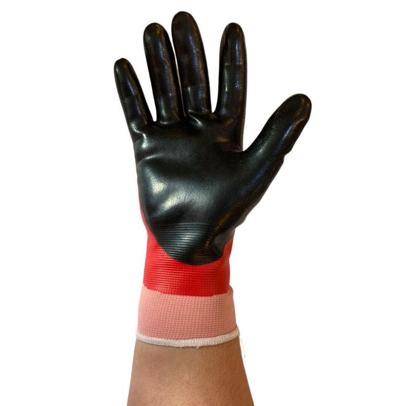Nossa luva Termica é ideal para cozinha e churrasco. Voce pode pegar e segurar Carnes, grelhas, aros, facas, garfos, panelas, wok grelha, e muitos outros itens. Em testes não formais, colocamos as mão em uma grelha quente por 30 segundos até que o calor começasse a chegar. Atenção: após finalizada a luva leva um banho estético de cores Vermelha e preta, eventuais bolhas podem aparecer e romper, não afetando as qualidades de segurança da luvas. Não é defeito. Luva de malha de nailon com revestimento total em nitrilo e duplo na palma. Cor preta e vermelha. Tamanho: Grande CARACTERÍSTICAS Não deve ser utilizadas para pegar nada incandescente , como carvão. Luva de malha com revestimento total em nitrilo e duplo na palma, para maior proteção das mãos proporcionando maior flexibilidade e destreza; Alta aderência em áreas secas e molhadas; Possuindo também barreira para calor de contato, onde auxilia na proteção em um ambiente que possa haver o toque em peças com nível de calor até 250 Cº. Resultado do ensaio mecânico 4131X.