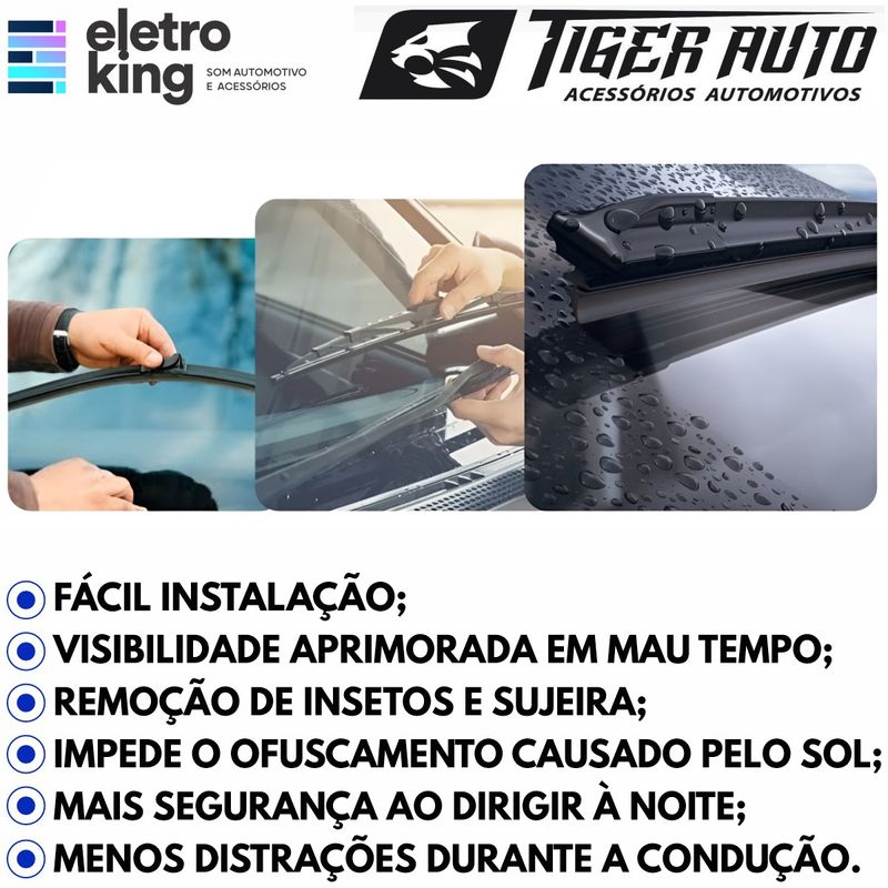 Par de Palhetas Específicas Silicone Tiger Auto Compatível com S10 e Trailblazer 11/19 - TG0507.008 Com tecnologia de ponta, o Par de Palhetas Específicas de Silicone Tiger Auto oferece máxima eficiência na limpeza do para-brisa, garantindo alta resistência, desempenho silencioso e visibilidade superior. Fabricadas em silicone de alta durabilidade e com sistema de encaixe rápido, proporcionam instalação fácil e aderência perfeita mesmo sob as condições climáticas mais extremas. Especificações Técnicas: • Marca: Tiger Auto • Modelo: Par de Palhetas TG0507.008 • Material da Haste: Plástico Semirrígido • Material da Lâmina: Borracha de alto desempenho. • Fixação: Sistema de encaixe rápido (pré-montado). • Tamanhos: Palheta do motorista 22"(56 cm) e do passageiro 18"(46 cm). • Durabilidade: Alta resistência ao desgaste e às condições climáticas. • Aderência: Pressão uniforme para melhor limpeza do para-brisa. • Instalação: Simples e rápida, sem necessidade de adaptadores. • Compatível com: S10 e Trailblazer 2011 a 2019. Conteúdo da Embalagem: • 01 Par de Palhetas Específicas Silicone Tiger Auto Importante: • Garantia de 90 Dias. • Valor do Par.