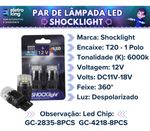 Par Lâmpada Led T20 1 Polo 7440 16 Leds Shocklight - SLL-127440-BC É uma lâmpada LED de substituição projetada para várias aplicações automotivas, como luzes de freio, luzes de ré, luzes de piscas e luzes de neblina, entre outras. Com 16 LEDs, oferece uma iluminação brilhante e de baixo consumo de energia. Compatível com sistemas de 12V. A marca Shocklight é conhecida por produzir produtos de alta qualidade para iluminação automotiva. Especificações Técnicas: • Marca: Shocklight • Encaixe: T20 - 1 Polo • Tonalidade (K): 6000k • Voltagem: 12V • Volts: DC11V-18V • Feixe: 360° • Uso: Luzes de freio, luzes de ré, luzes de piscas, luzes de neblina. • Luz: Despolarizado • Input (A) 13.5V: 0.5A±0.06A • Observação: Led Chip: GC-2835-8PCS - GC-4218-8PCS Conteúdo da Embalagem: • 02 Lâmpadas Led 1 Polo T20 Importante: • Garantia de 90 Dias. • Valor do Par.