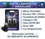 Par Lâmpada Led T25 2 Polos 3157 16 Leds Shocklight - SLL-123157-BC É uma lâmpada LED de substituição projetada para várias aplicações automotivas, como luzes de freio, luzes de ré, luzes de piscas e luzes de neblina, entre outras. Com 16 LEDs, oferece uma iluminação brilhante e de baixo consumo de energia. Compatível com sistemas de 12V. A marca Shocklight é conhecida por produzir produtos de alta qualidade para iluminação automotiva. Especificações Técnicas: • Marca: Shocklight • Encaixe: T25 - 2 Polos • Tonalidade (K): 6000k • Voltagem: 12V • Volts: DC11V-18V • Feixe: 360° • Uso: Luzes de freio, luzes de ré, luzes de piscas, luzes de neblina. • Luz: Despolarizado • Input (A) 13.5V: H • Observação: Led Chip: GC-2835-8PCS - GC-4218-8PCS Conteúdo da Embalagem: • 02 Lâmpadas Led 2 Polos T25 Importante: • Garantia de 90 Dias. • Valor do Par.