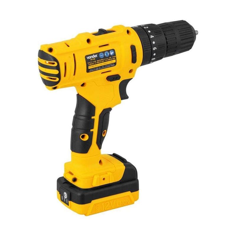 Parafusadeira/furadeira Bateria 12V Pfv120i Com Imp VonderParafusadeira/Furadeira Bateria 12V PFV120I com Impacto VonderA Parafusadeira/Furadeira Vonder PFV120I é a ferramenta ideal para quem busca eficiência e praticidade em seus projetos de bricolagem e reparos domésticos. Com um design compacto e ergonômico, ela oferece conforto e facilidade de uso, graças ao cabo emborrachado e à luz LED que melhora a visibilidade do local de trabalho. A bateria de íons de lítio de 12V garante alta eficiência e durabilidade, permitindo que você trabalhe por mais tempo sem interrupções. Além disso, a fonte de alimentação bivolt automático facilita o carregamento em qualquer lugar.Com 18 posições de torque e velocidade variável, esta ferramenta é versátil e pode ser utilizada em diversas aplicações, desde apertar e soltar parafusos até perfurar madeira, metal e alvenaria. A função percutora adiciona ainda mais potência para trabalhos em concreto. A maleta de transporte mantém todos os acessórios organizados e prontos para uso, aumentando a vida útil do produto.ESPECIFICAÇÕES TÉCNICAS:- Marca: Vonder- Modelo: PFV120I- Tipo de parafusadeira elétrica: Compacta- Bateria: 12V - 1,3 Ah - Íons de lítio- Tempo de carga da bateria: 3 horas- Velocidade de rotação: 400 a 1400 rpm- Torque máximo: 20 Nm- Impactos por minuto: 21.000 ipm- Capacidade de perfuração: Madeira 16 mm, Metal 10 mm, Concreto 10 mm- Tipo de mandril: Aperto rápido 3/8 (10 mm)- Peso: 1 kg- Dimensões: Altura 28 cm, Largura 32 cm- Voltagem: 110V/220V- Frequência: 50 Hz/60 Hz- Com luz LED: Sim- Sistema de reversão: Sim- Controle de torque: Sim- Velocidade variável: SimITENS INCLUSOS:- 1 Parafusadeira/Furadeira- 1 Maleta plástica- 1 Bateria 12V - 1,3 Ah- 1 Fonte de alimentação- 6 Brocas (1,5 mm, 2,5 mm, 3 mm, 4 mm, 5 mm, 6 mm)- 6 Bits (fenda 5 mm e 6 mm, PZ1, PZ2, PH1, PH2)- 1 Prolongador 60 mmGARANTIA:A Vonder oferece uma garantia legal de 90 dias, além de uma garantia contratual de 9 meses. Para locadoras, a garantia é única e exclusiva de 90 dias. Isso proporciona segurança e suporte pós-venda para você.Para garantir o melhor desempenho da sua parafusadeira/furadeira, siga as instruções de uso e manutenção. Troque as brocas e bits conforme necessário e mantenha a ferramenta limpa e bem armazenada. Produto: Parafusadeira | Voltagem: 12V
