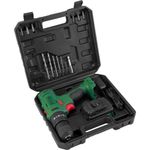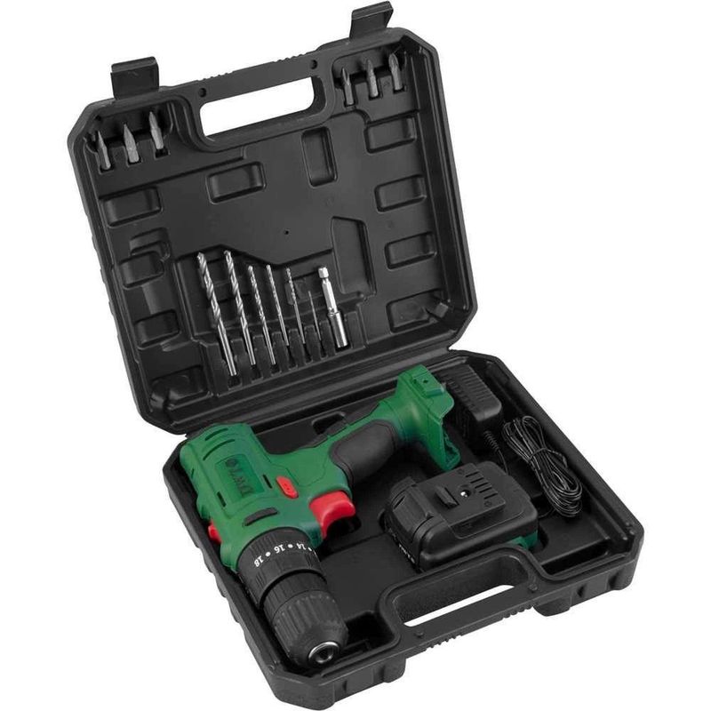 Parafusadeira/furadeira De Impacto A Bateria, 12 V, Fonte Bivolt Automática, Pfd 120i Dwt OstenvonderParafusadeira/furadeira de Impacto a Bateria, 12 V, Fonte Bivolt Automática, PFD 120i DWT OstenVonder -Conteúdo da embalagem: 1 Parafusadeira/furadeira. Acompanha: 1 maleta plástica, 1 bateria 12 V - 1,3 Ah, 1 fonte de alimentação, 6 brocas (1,5 mm, 2,5 mm, 3 mm, 4 mm, 5 mm, 6 mm), 6 bits (fenda 5 mm e 6 mm, PZ1, PZ2, PH1, PH2) e 1 prolongador 60 mm.Aplicação: Indicada para soltar e apertar parafusos de até 6 mm de diâmetro e fazer furos em madeiras, metais e/ou alvenaria. Tempo de carregamento da bateria: 3 a 5 horas.Destaques: Acompanha acessórios encaixados perfeitamente na maleta, conferindo organização, praticidade e maior vida útil. Possui regulagem para 18 posições de torque e velocidade variável (2 velocidades). Contém 3 funções de operação: parafusadeira, furadeira sem impacto e furadeira com impacto. Conta ainda com LED para melhor visibilidade do local de trabalho, indicador de carga da bateria, cabo com revestimento emborrachado proporcionando maior conforto ao operador, bateria de íons de lítio que confere alta eficiência de operação, além de fonte de alimentação bivolt automático com tensão de entrada de 100 V~ - 240 V~.Referência: 6005120100Garantia - E (CDC): Garantia legal: 90 dias + Garantia contratual: 9 meses (Para locadoras, garantia única e exclusiva de 90 dias)Modelo: PFD 120ICapacidade do mandril: 3/8 - 10 mmTipo de mandril: Aperto rápidoBateria: 12 V - 1,3 Ah - Íons de lítioTipo de velocidade: Variável (2 velocidades)Sistema de reversão: SimImpactos por minuto (ipm): 0 - 21.000/minTorque máximo/força de aperto: 20 N.m (modo parafusadeira)/25 N.m (modo furadeira)Capacidade máxima de perfuração em aço: 10 mmCapacidade máxima de perfuração em madeira: 16 mmCapacidade de furação no concreto/alvenaria: 10 mmAceleração transmitida nas mãos - braços do operador - ah: 9,5 m/s²Incerteza da aceleração transmitida nas mãos - braços do operador - k: 1,5 m/s²Massa aproximada (peso): 1,07 kgTensão de entrada: 100 V~ - 240 V~ - Bivolt automáticoFrequência: 50 Hz / 60 HzSegue norma: ABNT NBR IEC 60745-1, ABNT NBR IEC 60745-2-1 e ABNT NBR IEC 60745-2-2Rotações por minuto - rpm: 0 - 400/min / 0 - 1.400/minDestaques Comercial: Possui 18 posições de torque, 2 velocidades, funções de parafusadeira, furadeira com e sem impacto, LED, indicador de carga e bateria de íons de lítio bivolt.Aplicação Comercial: Indicada para parafusar até 6 mm e furar madeira, metal ou alvenaria. Bateria recarrega em 3 a 5 h.Características Gerais do Produto:Garantia: - 3 Meses