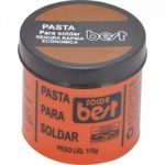 A pasta para soldar BEST, que surpreende pela sua qualidade e poder de adesão, é indicada para superfícies metálicas com alto grau de oxidação e para superfícies de difícil aplicação dos fluxos líquidos, como soldagem de tubos, equipamentos de refrigeração e terminais de baterias. NÃO É RECOMENDADO PARA SOLDAGEM DE CONEXÕES ELETRO-ELETRÔNICAS.Aplicação:- Para superfícies metálicas com alto grau de oxidação e para superfícies de difícil aplicação dos fluxos líquidos.Pesquisa:pasta|solda|110|g|110g|best|