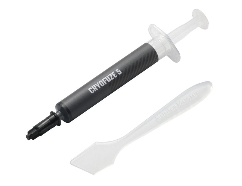 PASTA TERMICA CRYOFUZE 5 BLACK - 3 GRAMAS - COOLER MASTERA Pasta Térmica CryoFuze 5 Black da Cooler Master é a solução ideal para otimizar a dissipação de calor em seus componentes eletrônicos. Essencial para manter a performance e a longevidade de seu hardware, esta pasta térmica garante uma transferência de calor eficiente.Desenvolvida para entusiastas e profissionais, esta pasta térmica de alta performance garante que processadores e placas de vídeo operem em temperaturas ideais, prevenindo o superaquecimento e contribuindo para a estabilidade do sistema. Sua composição avançada assegura um contato térmico superior entre o componente e o dissipador.DiferenciaisAlta Condutividade Térmica: Promove uma transferência de calor eficiente do componente para o dissipador, otimizando o resfriamento.Fácil Aplicação: Sua consistência permite uma aplicação suave e uniforme, facilitando o processo de montagem.Otimização de Desempenho: Contribui para a estabilidade e o máximo desempenho do seu sistema, mesmo sob cargas intensas.Mais sobre o ProdutoIdeal para CPUs, GPUs e chipsets em diversas plataformas.Cor preta, discreta e profissional, integrando-se perfeitamente ao visual do seu hardware.Embalagem de 3 gramas, ideal para múltiplas aplicações ou uma única aplicação robusta.Ficha TécnicaMarca: COOLER MASTERNome: PASTA TERMICA CRYOFUZE 5 BLACK - 3 GRAMAS - MGY-ADSK-N03G-R1EAN: 4719512146989Código de Referencia: 280727Cor: BLACK