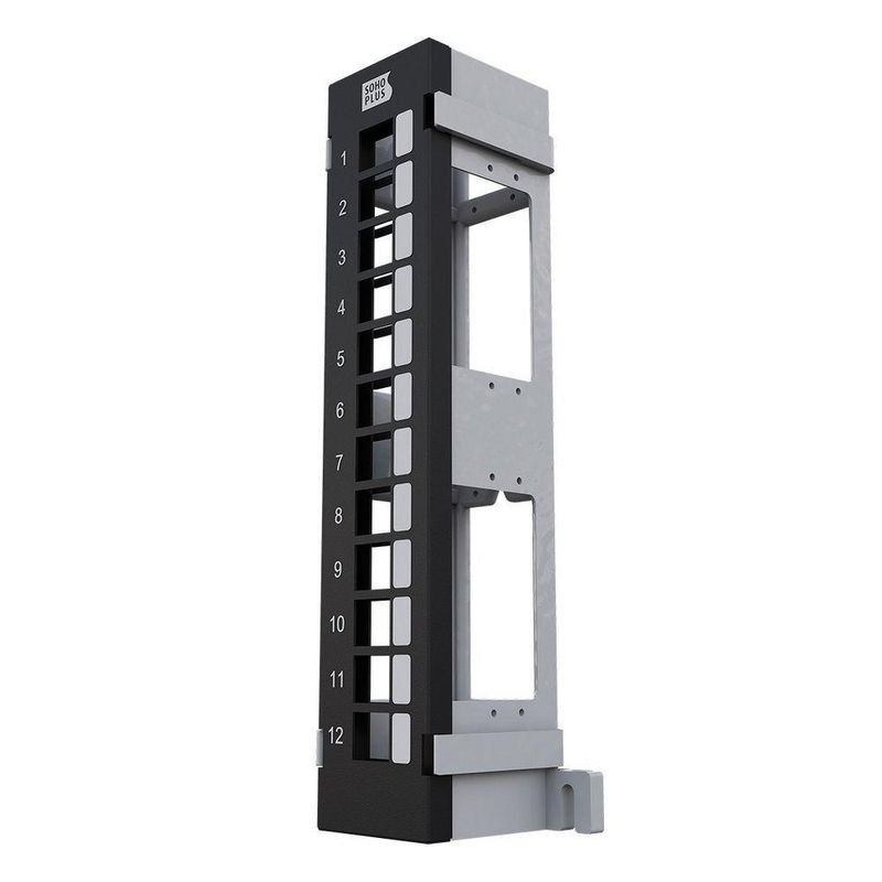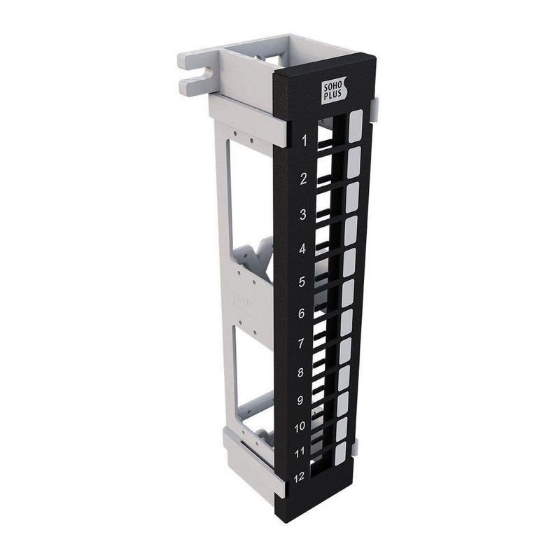 Patch Panel Descarregado 12 Portas De Parede 35050227PATCH PANEL DESCARREGADO 12P DE PAREDE SOHOPLUSINFORMAÇÕES ADICIONAIS:- Quantidade de Posições: 12 posiçõesAltura (mm) 84,7mmLargura (mm) 253,5mmProfundidade (mm) 47,9mmVantagem:- Confeccionado em aço, com uma base em plástico de engenharia.- Acabamento em pintura epóxi de alta resistência a riscos na cor preta.-Produto desenvolvido para ambientes SOHO.-Todas as posições possuem área para identificação dos pontos.-Para completar as 12 posições é necessária a utilização de conectores RJ45 Fêmea SoHoplusU/UTP.- Encaixes compatíveis com toda a linha de conectores fêmea da linha SohoPlus.- Permite escalabilidade no número de portas conforme necessidade.- Fornecido sem os conectores (descarregado)