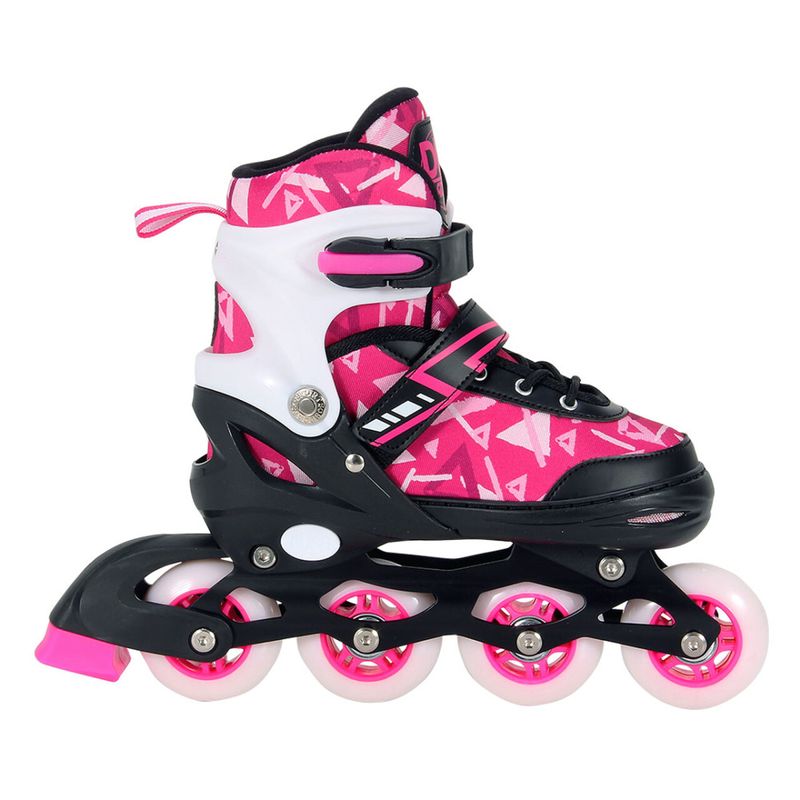 AVISO: IMAGENS MERAMENTE ILUSTRATIVAS!!! O Patins Inline Ajustável Radical tem um design super moderno e é ideal para quem já é craque na patinação. IDADE RECOMENDADA: Acima de 06 (seis) anos CONTEÚDO DA EMBALAGEM: 01 par de patins ESPECIFICAÇÃO: Material: Polipropileno (PP) e Polietileno (PE) Rodas em PVC: 68mm Tamanho: G (38 – 41) Peso máximo suportado: até 80 kg